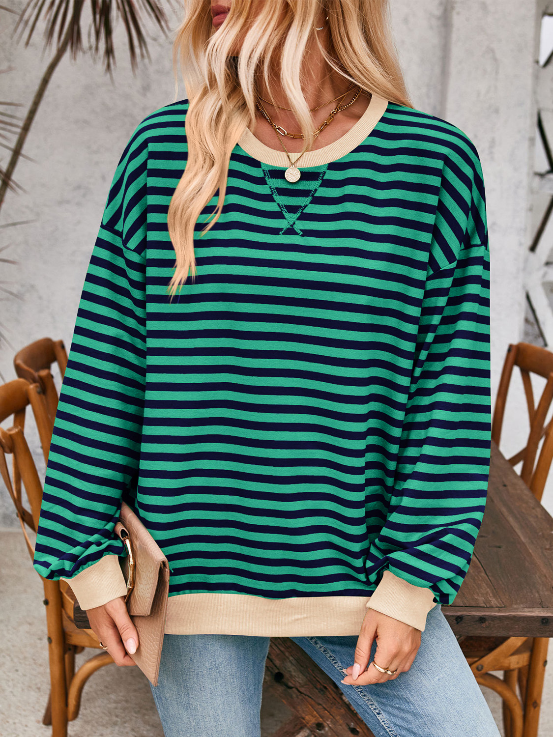 Contrast Striped Long Sleeve Sweatshirt