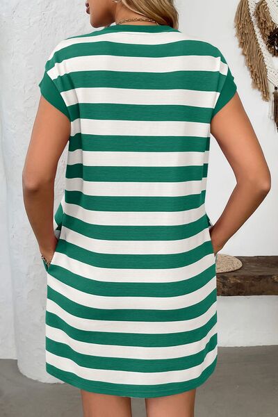 Contrast Striped Round Neck Short Sleeve Mini Dress