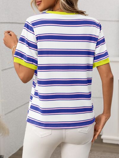 Contrast Striped Round Neck Short Sleeve T-Shirt