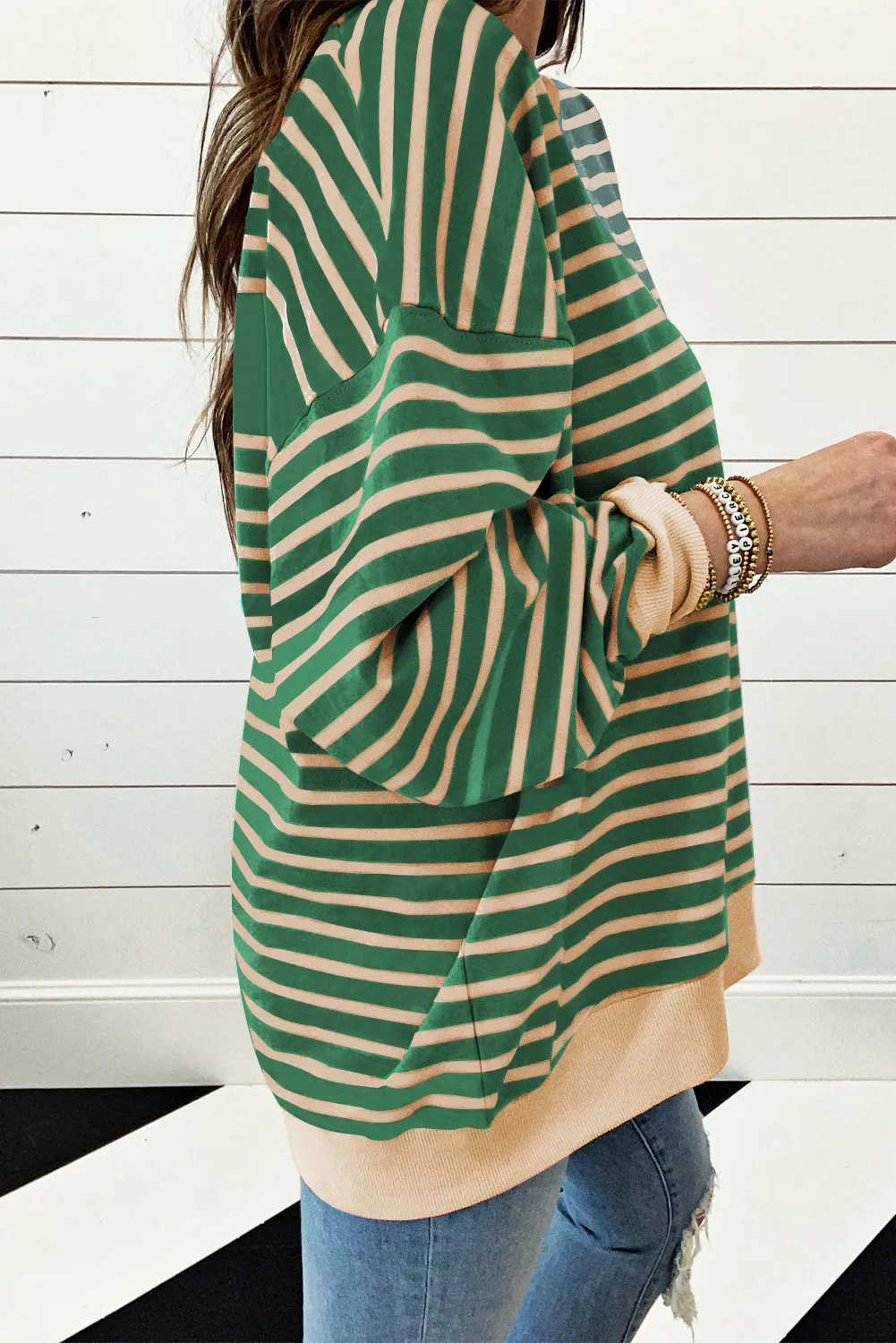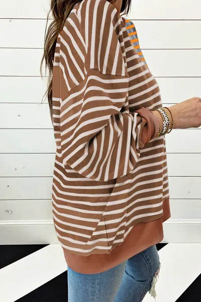 Contrast Stripes Round Neck Long Sleeve Sweatshirt