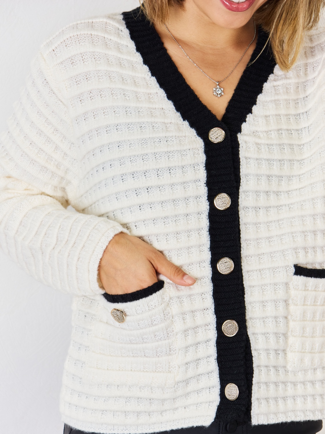 Contrast Trim Button Up Cardigan