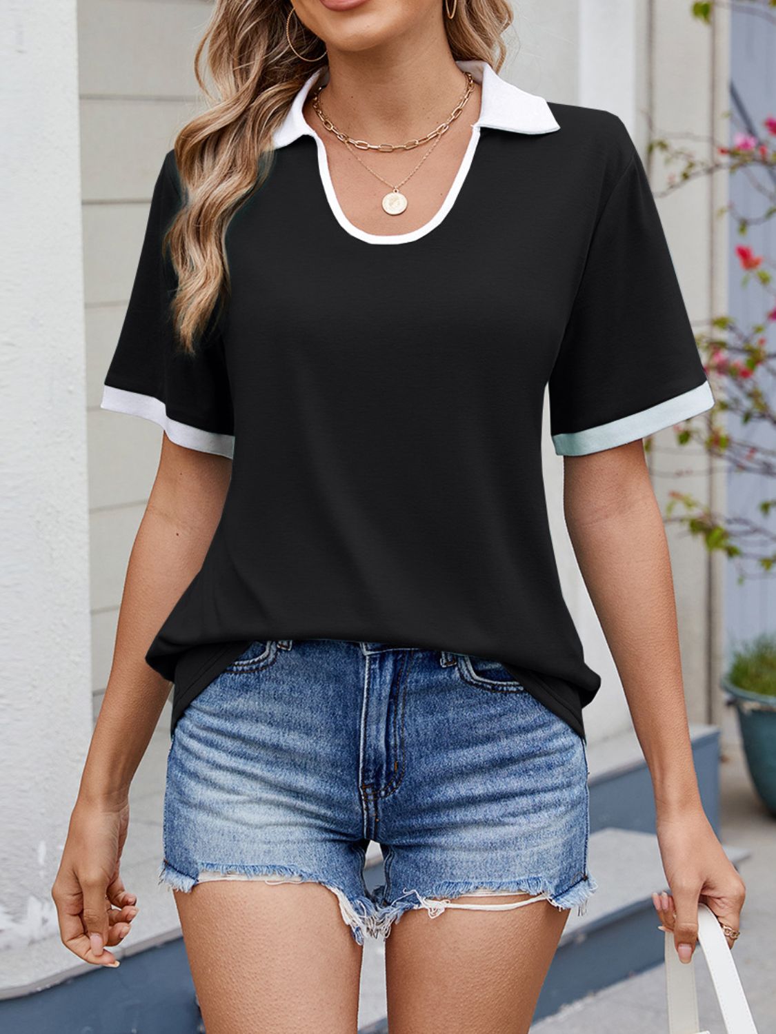 Contrast Trim Collar Short Sleeve Casual T-Shirt