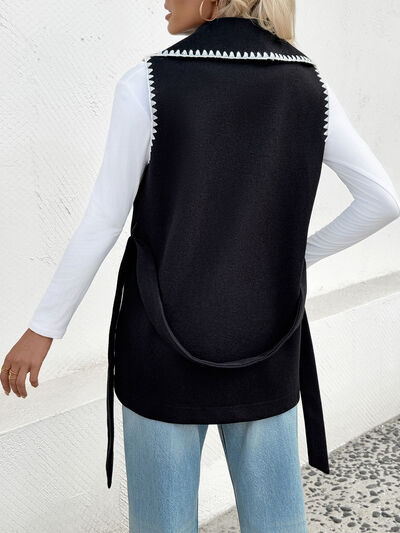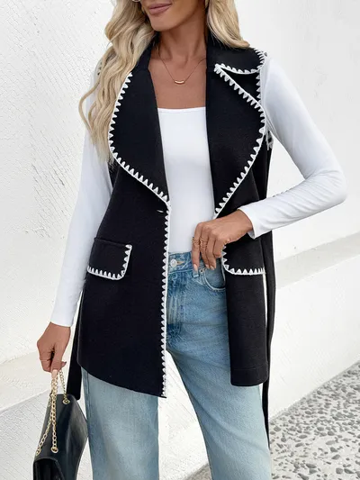 Contrast Trim Collared Neck Vest Coat