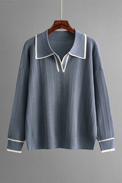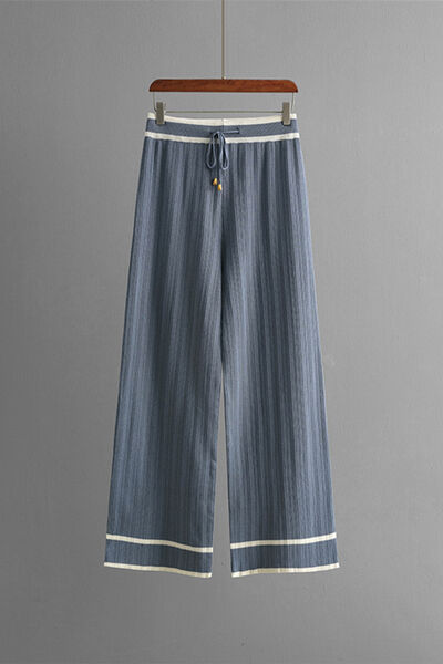 Contrast Trim Johnny Collar Top and Drawstring Pants Sweater Set