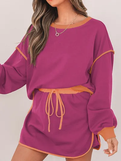 Contrast Trim Long Sleeve Top and Skort Set