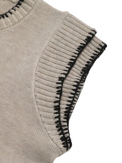 Contrast Trim Round Neck Cap Sleeve Knit Top