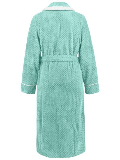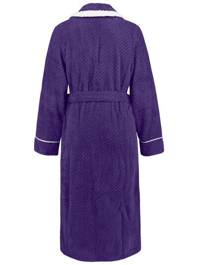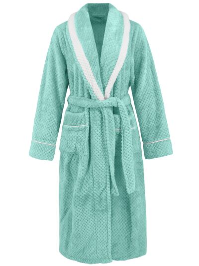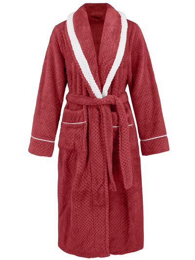 Contrast Trim Tie Waist Lounge Nightgown with Pockets