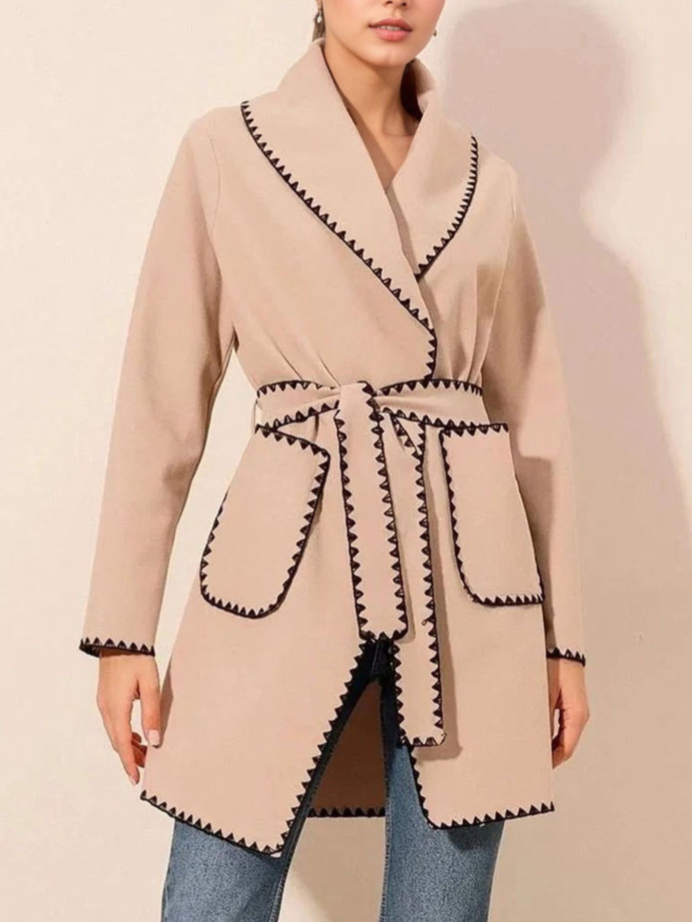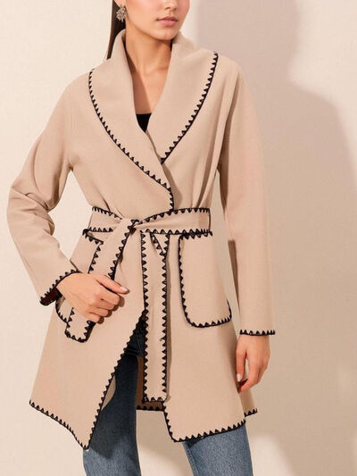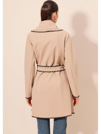 Contrast Trim Tie Waist Outerwear