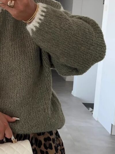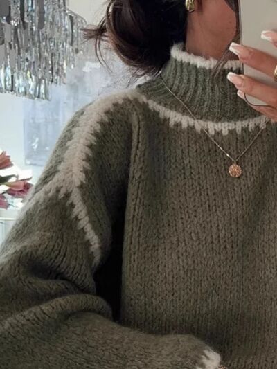 Contrast Trim Turtleneck Long Sleeve Sweater
