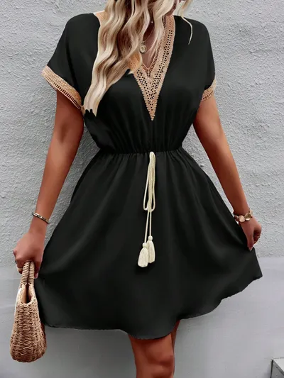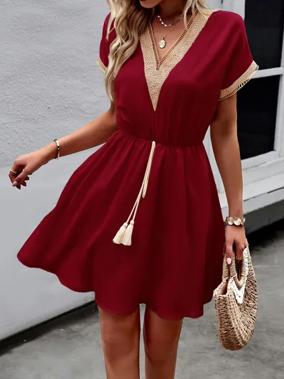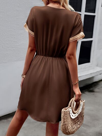 Contrast Trim V-Neck Short Sleeve Mini Dress