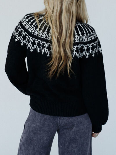 Contrast Turtleneck Long Sleeve Sweater