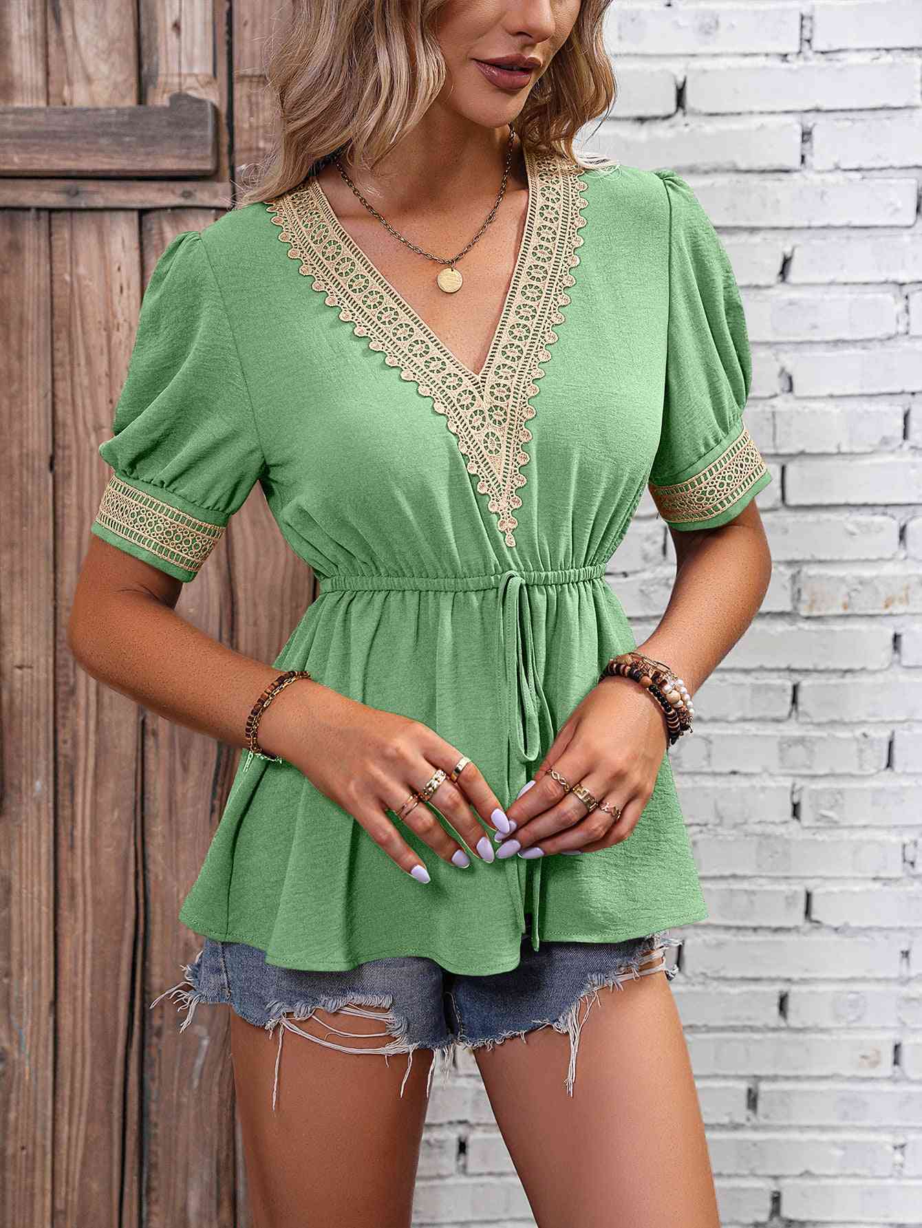 Contrast V-Neck Babydoll Top