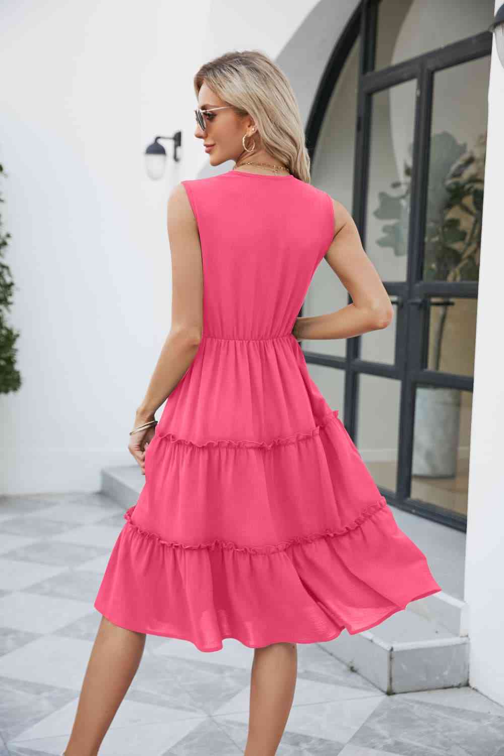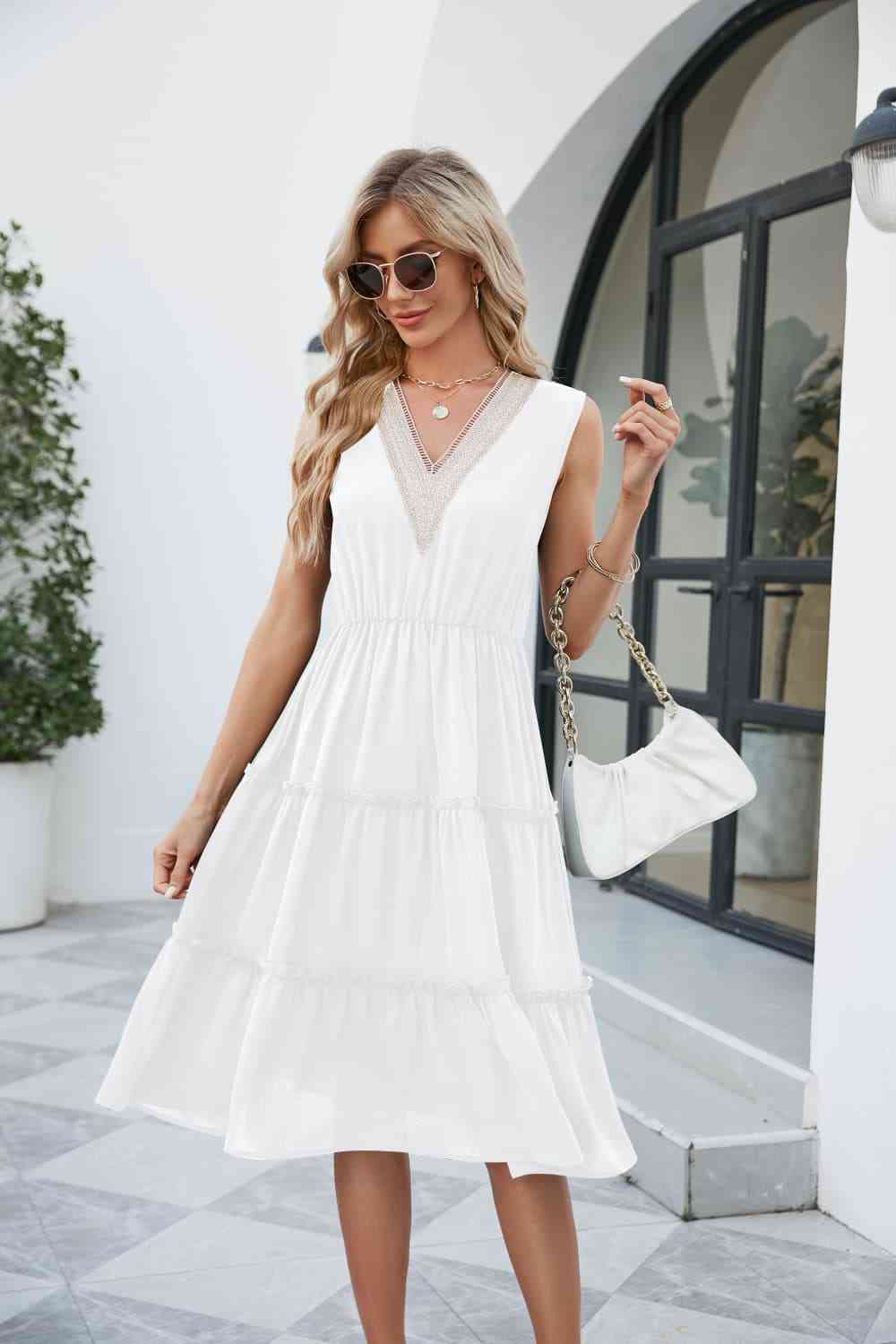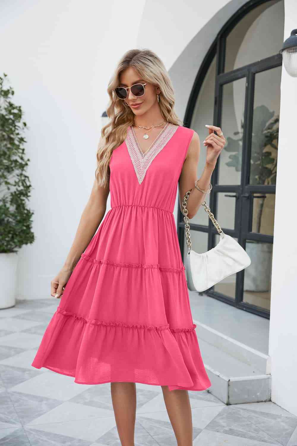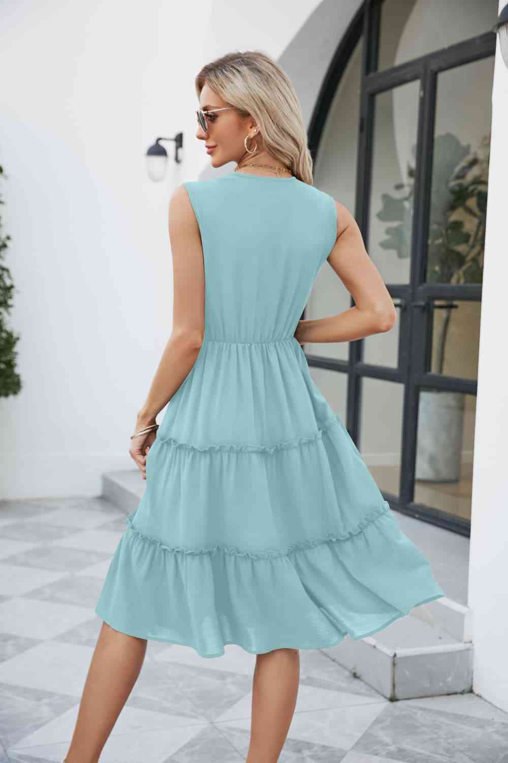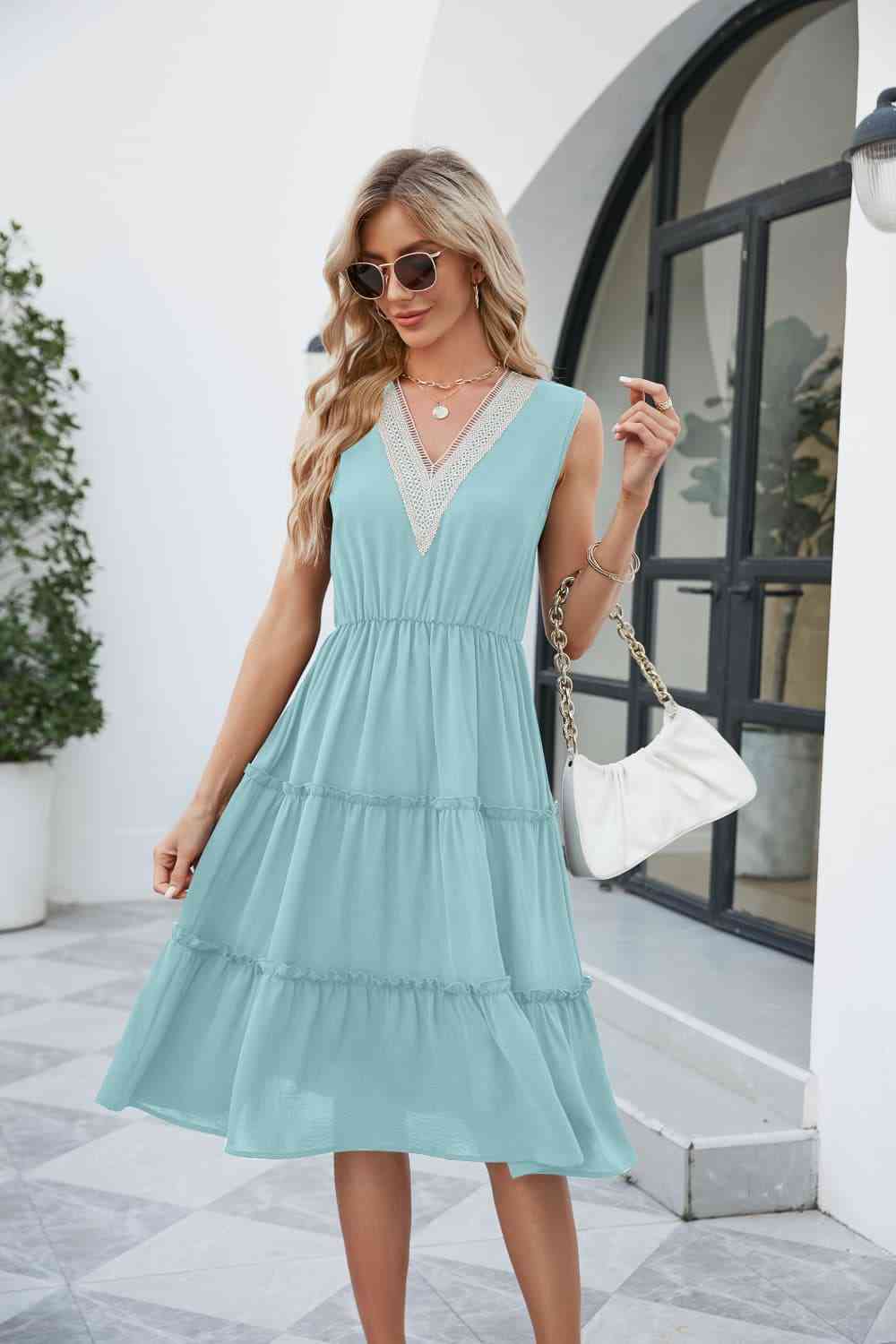 Contrast V-Neck Sleeveless Tiered Dress