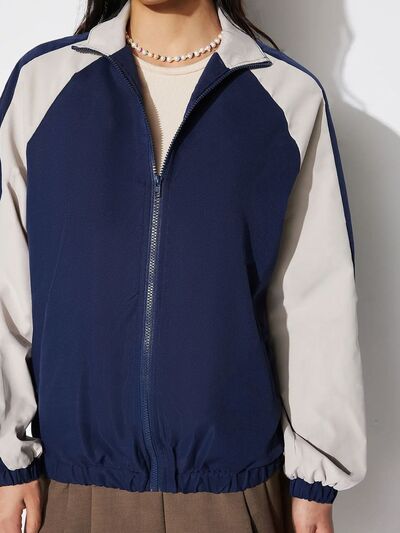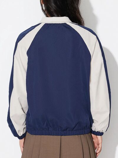 Contrast Zip Up Collared Neck Long Sleeve Jacket