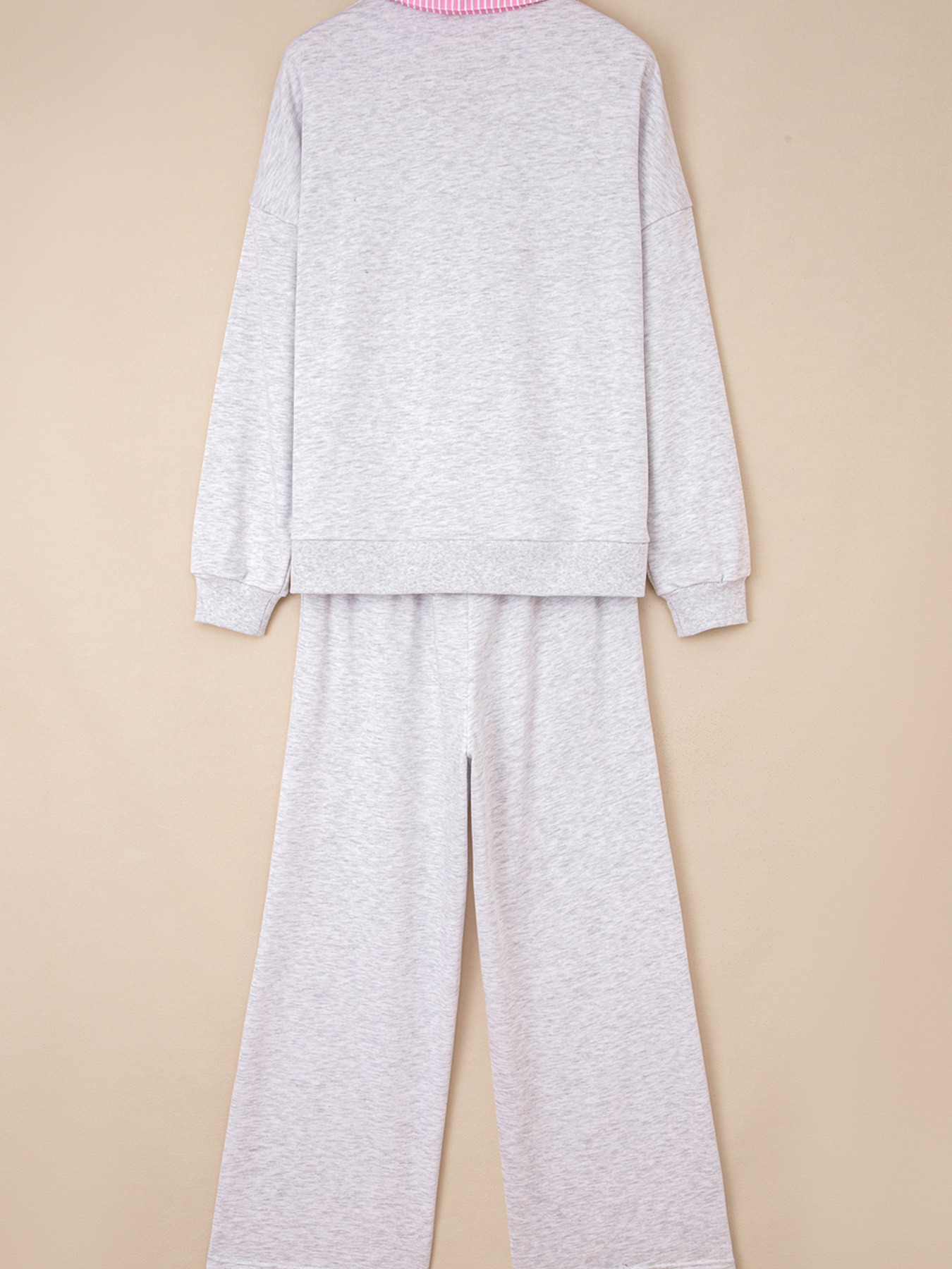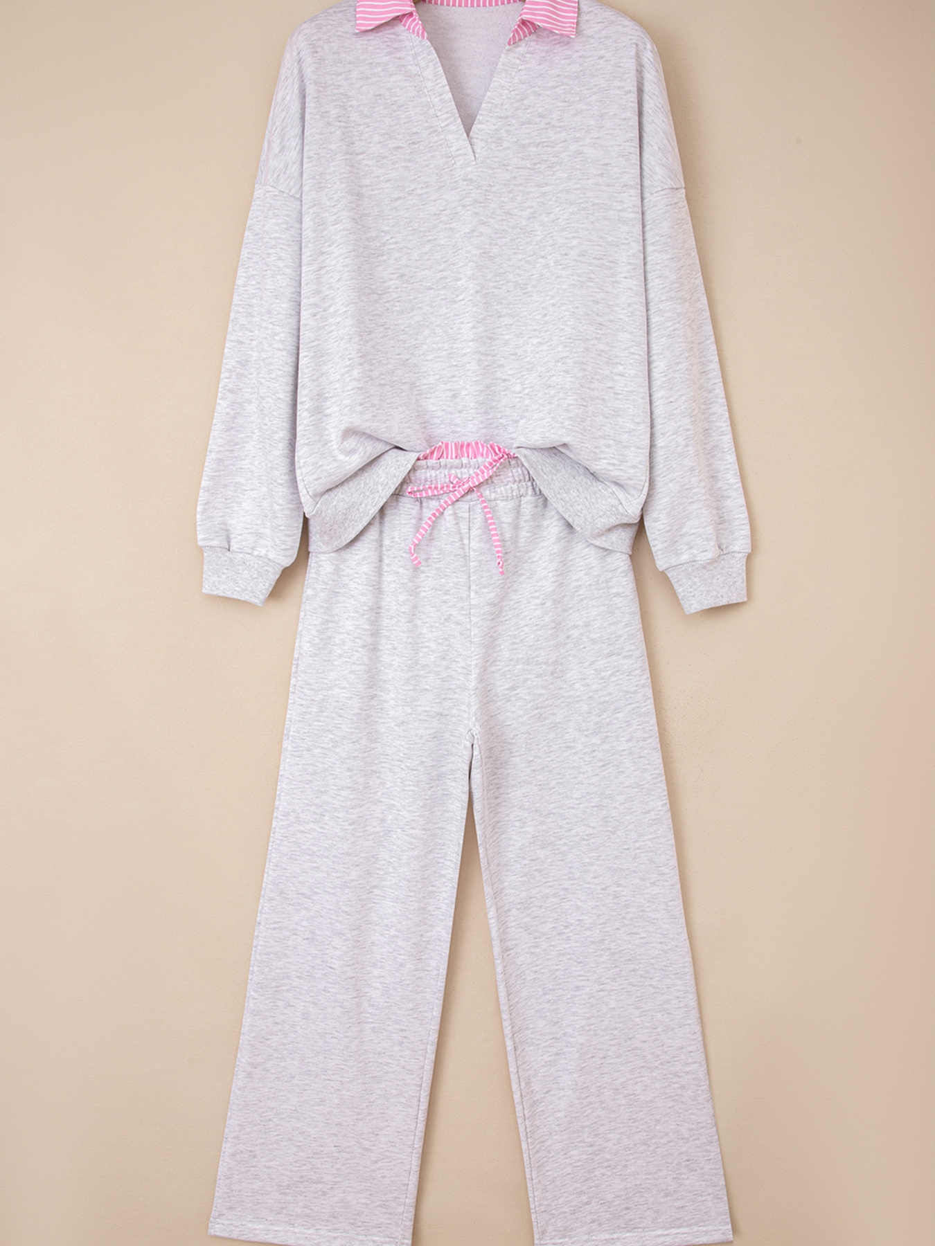 Contrasted Trim Frilled Collar Drop Shoulder Top and Drawstring Pant Set