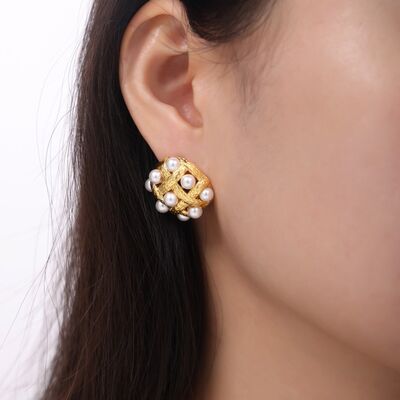 Copper Shell Pearl Stud Earrings