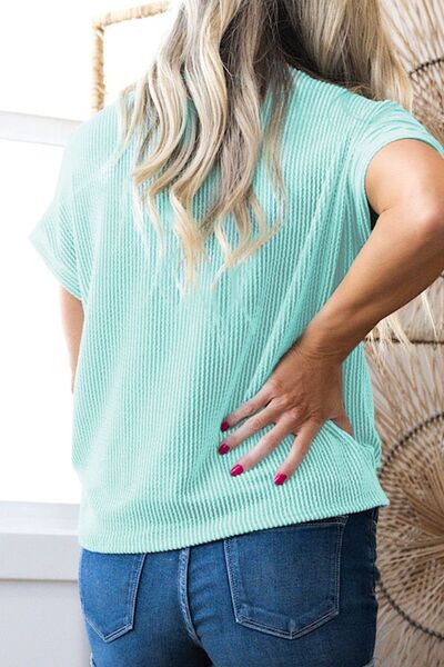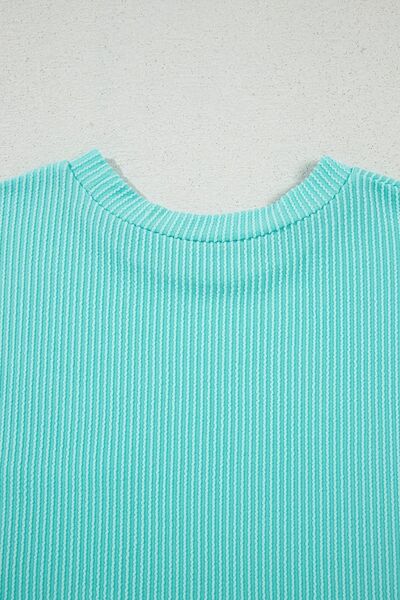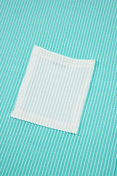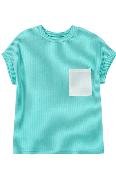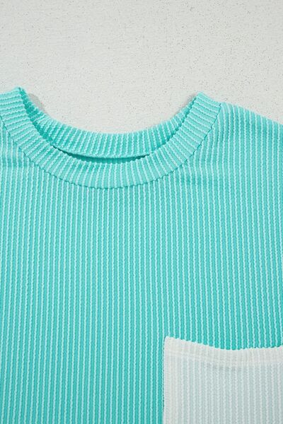 Corded Knit Color Block Pocketed Crew Neck T Shirt
