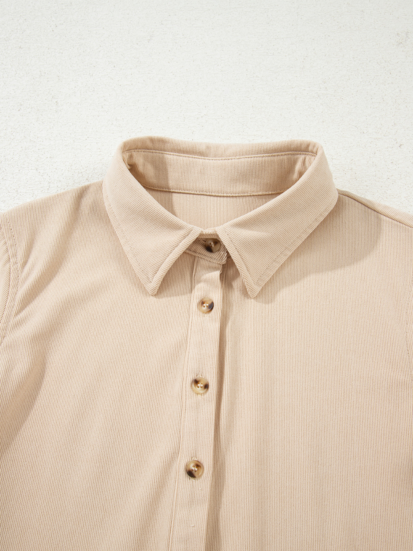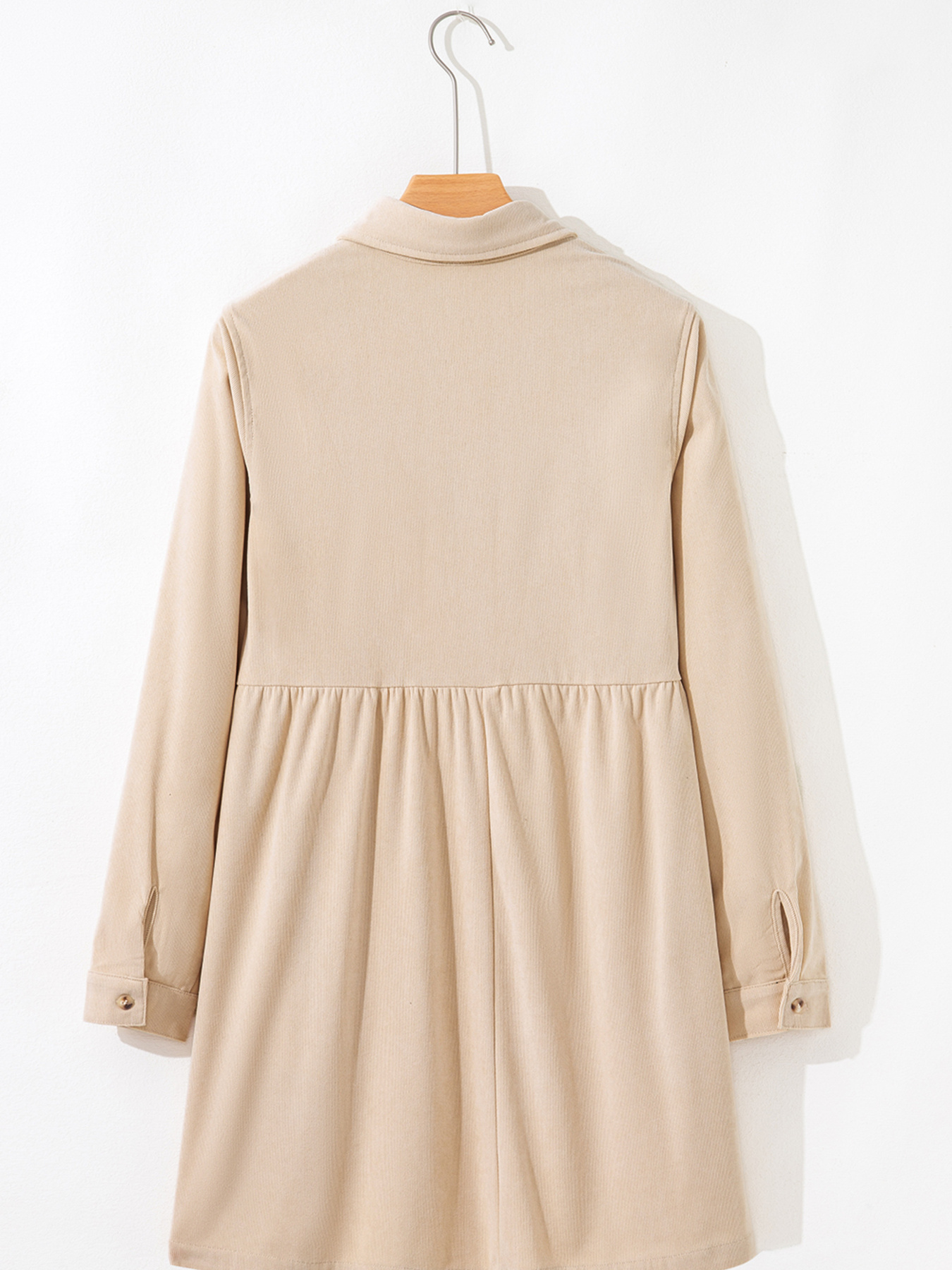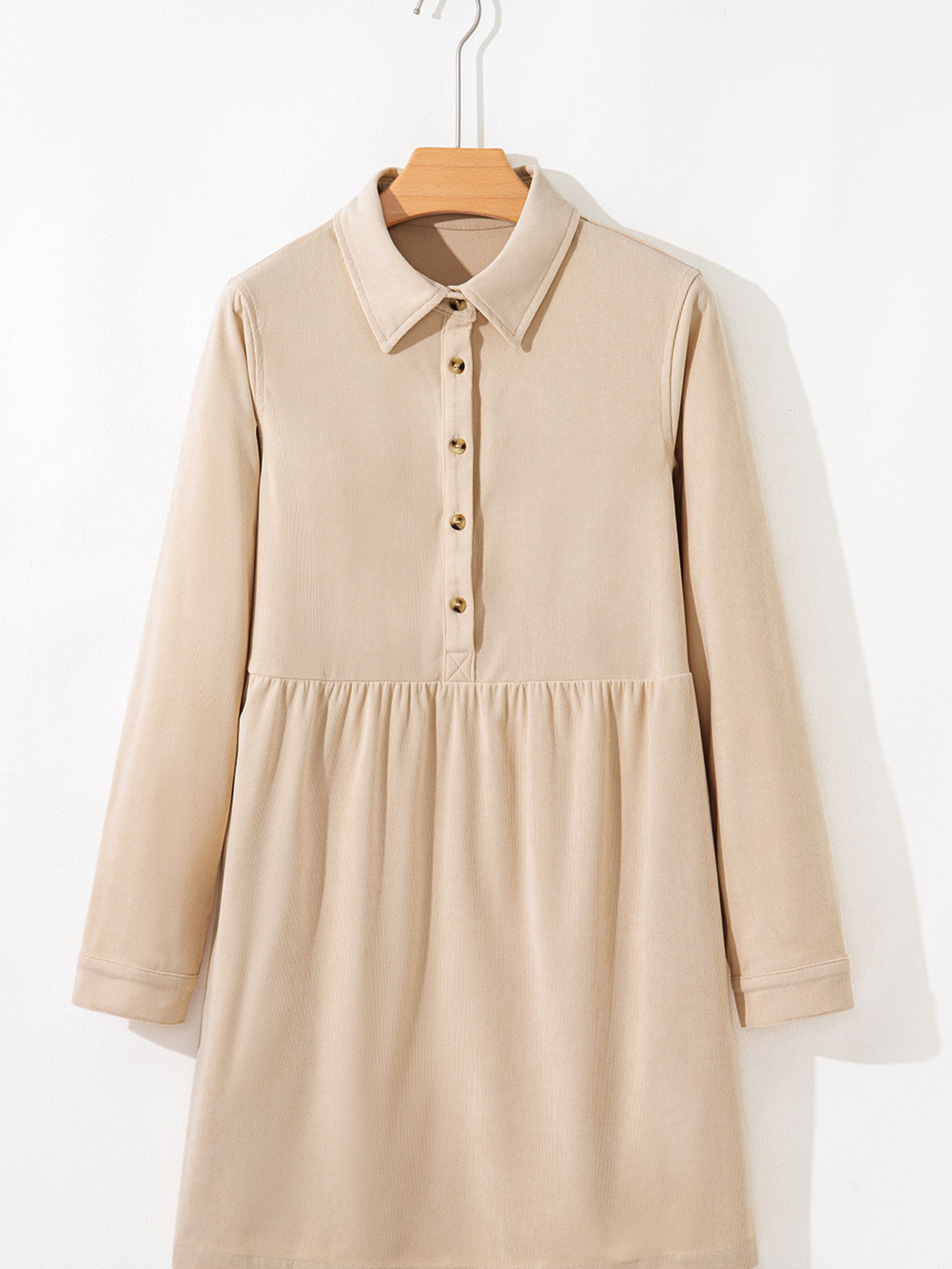 Corduroy Half Button Collared Long Sleeve Mini Dress
