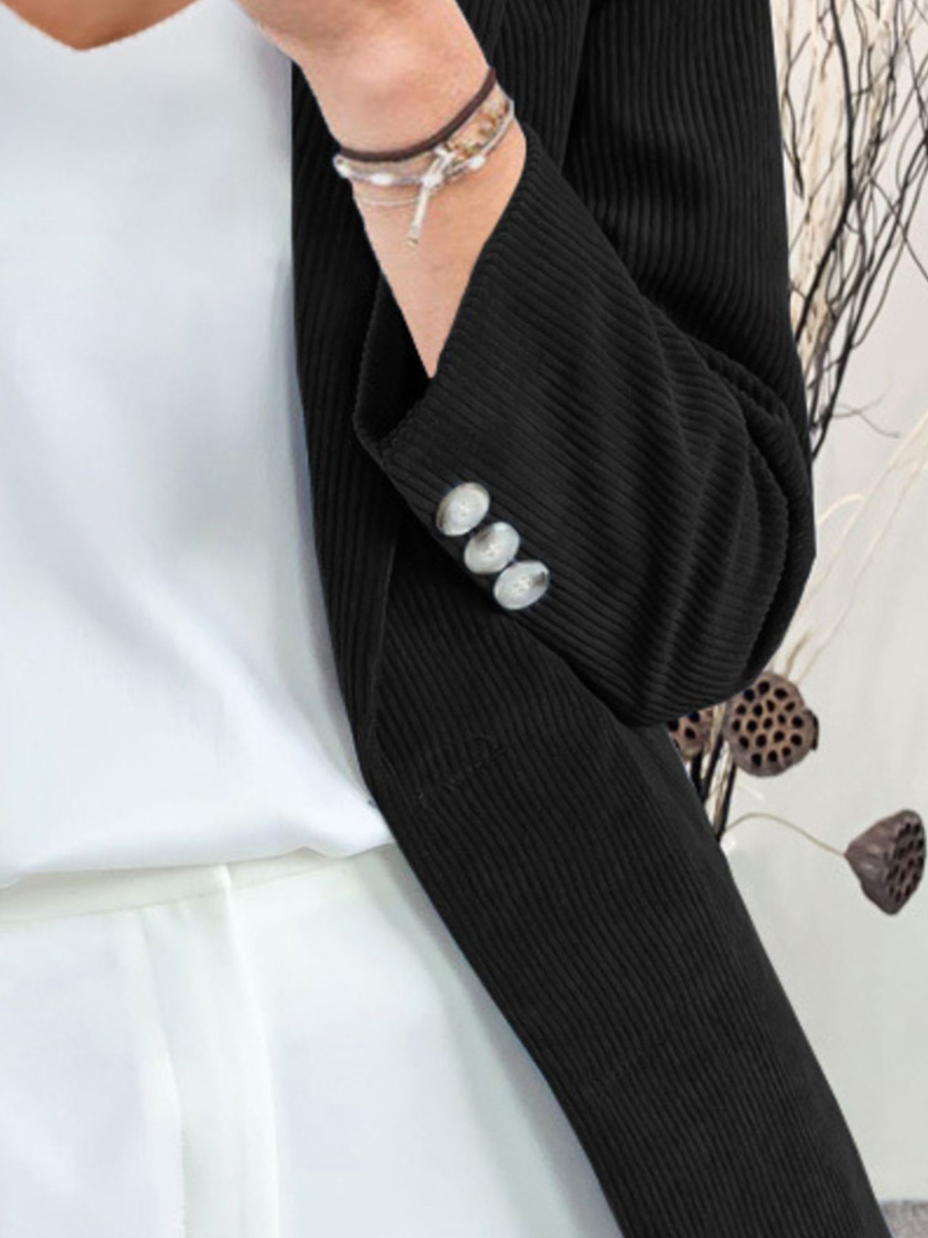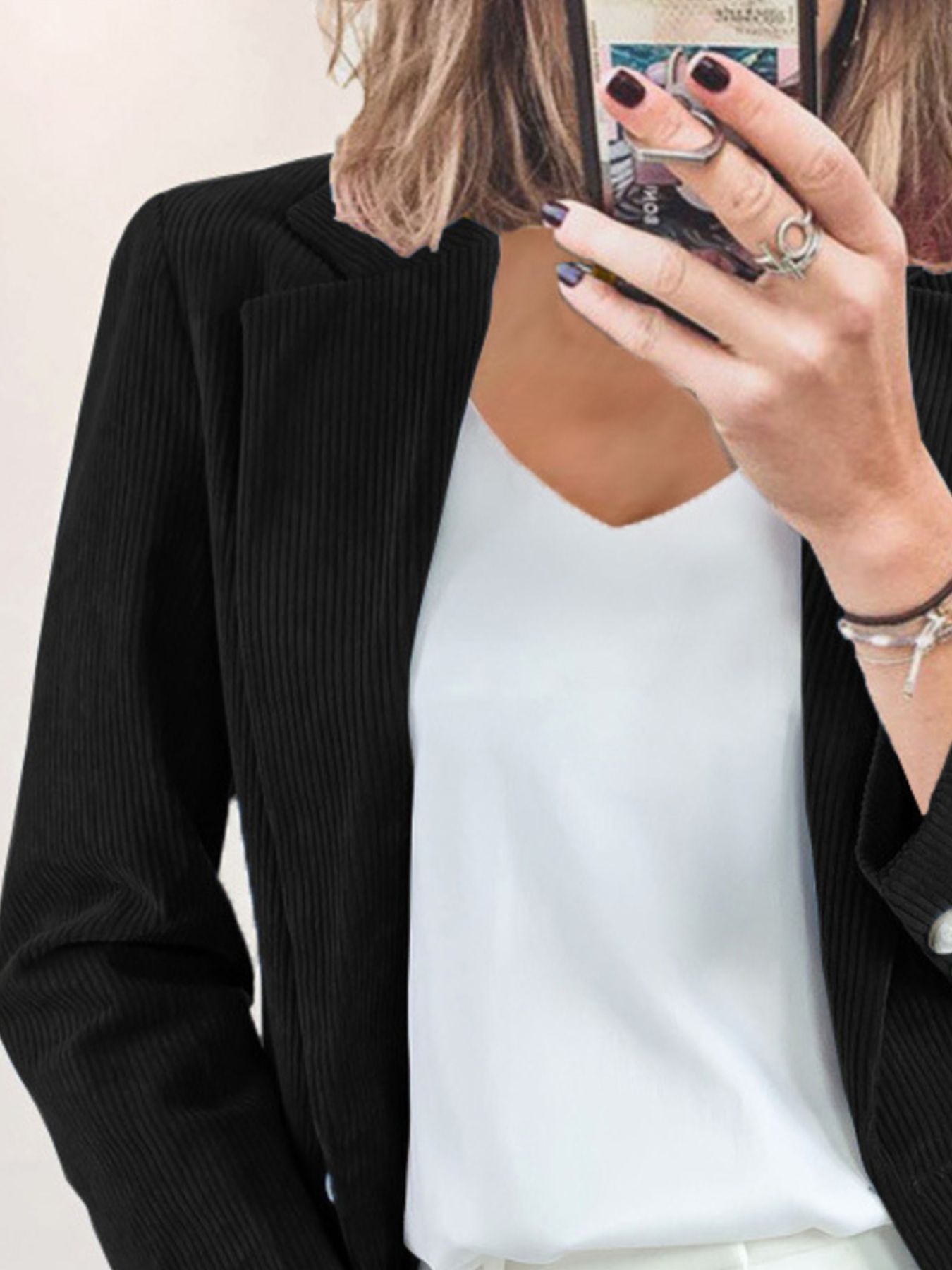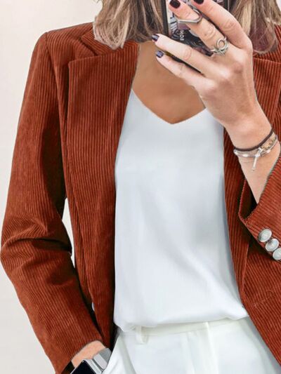 Corduroy Lapel Collar Casual Blazer