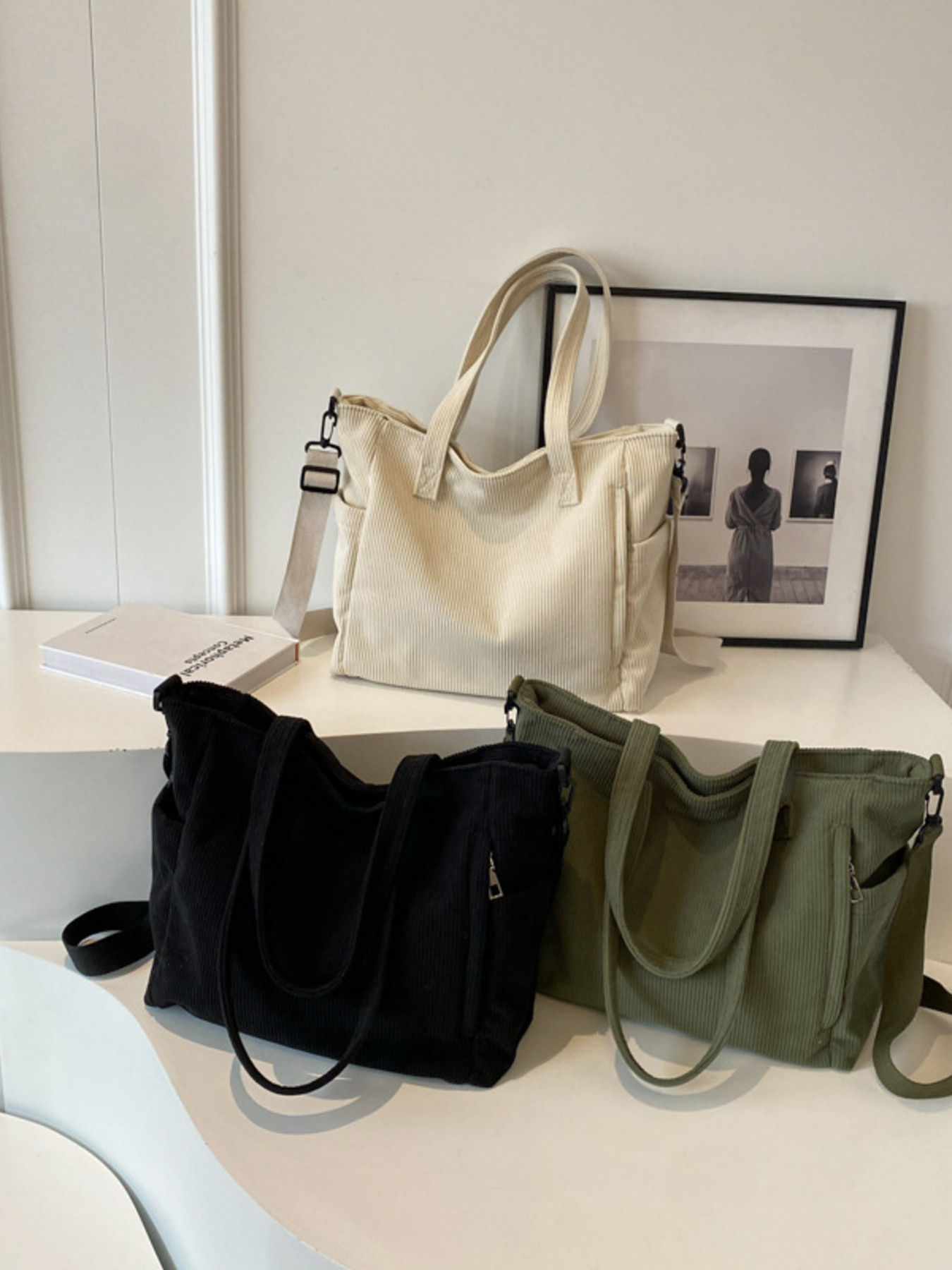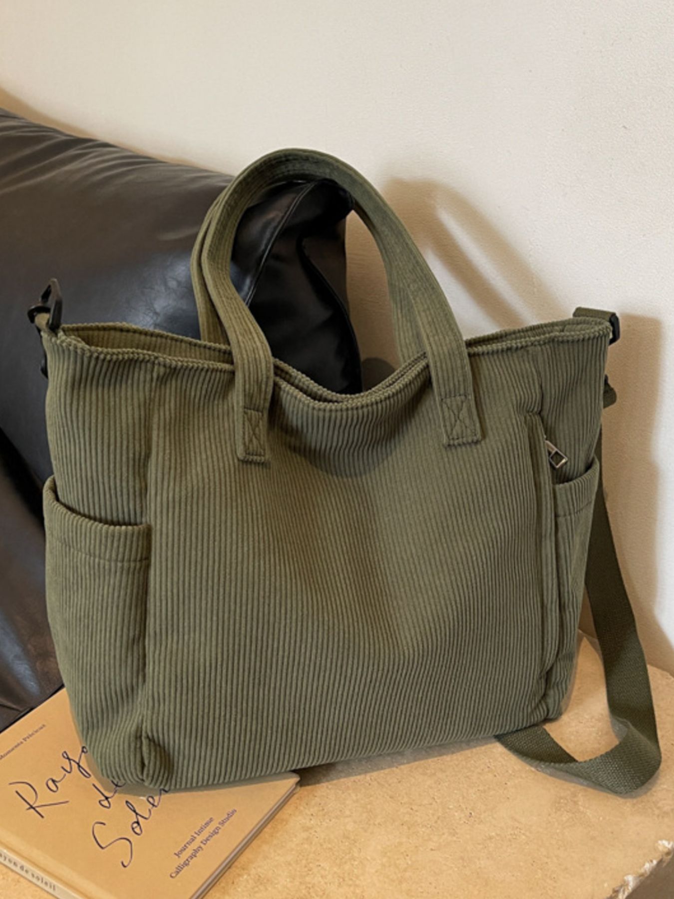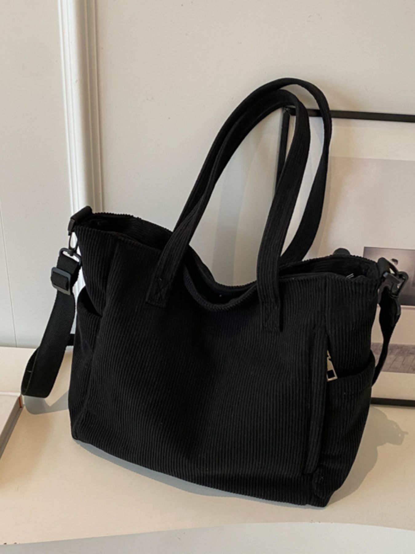 Corduroy Solid Color Handbag