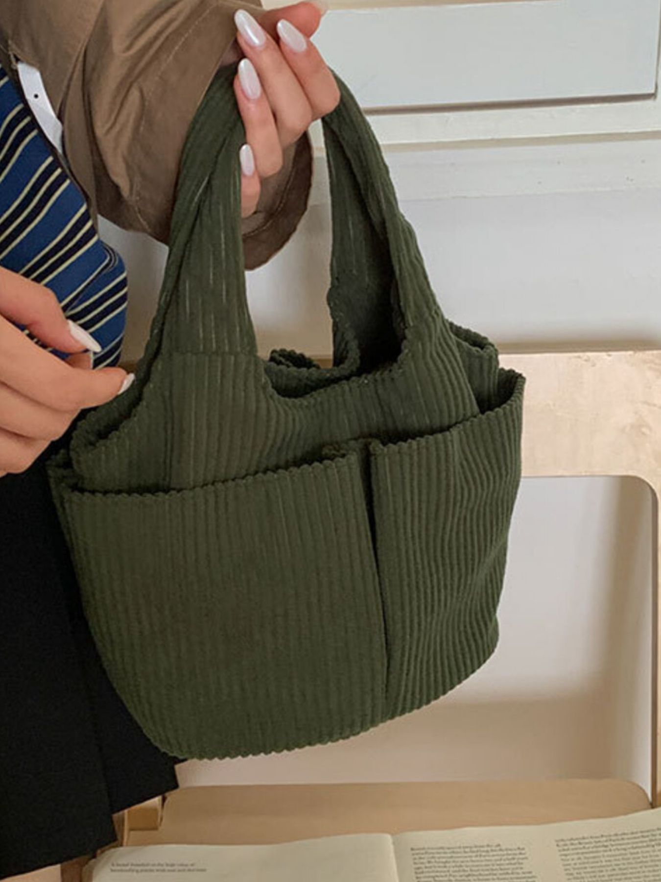 Corduroy Solid Color Handbag