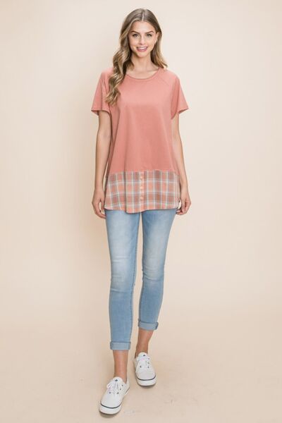 Cotton Bleu by Nu Lab Plaid Contrast Short Sleeve T-Shirt