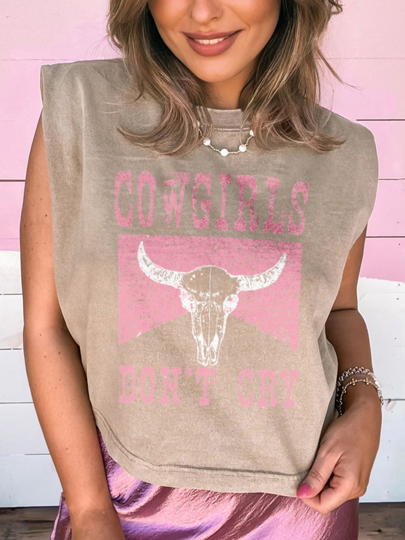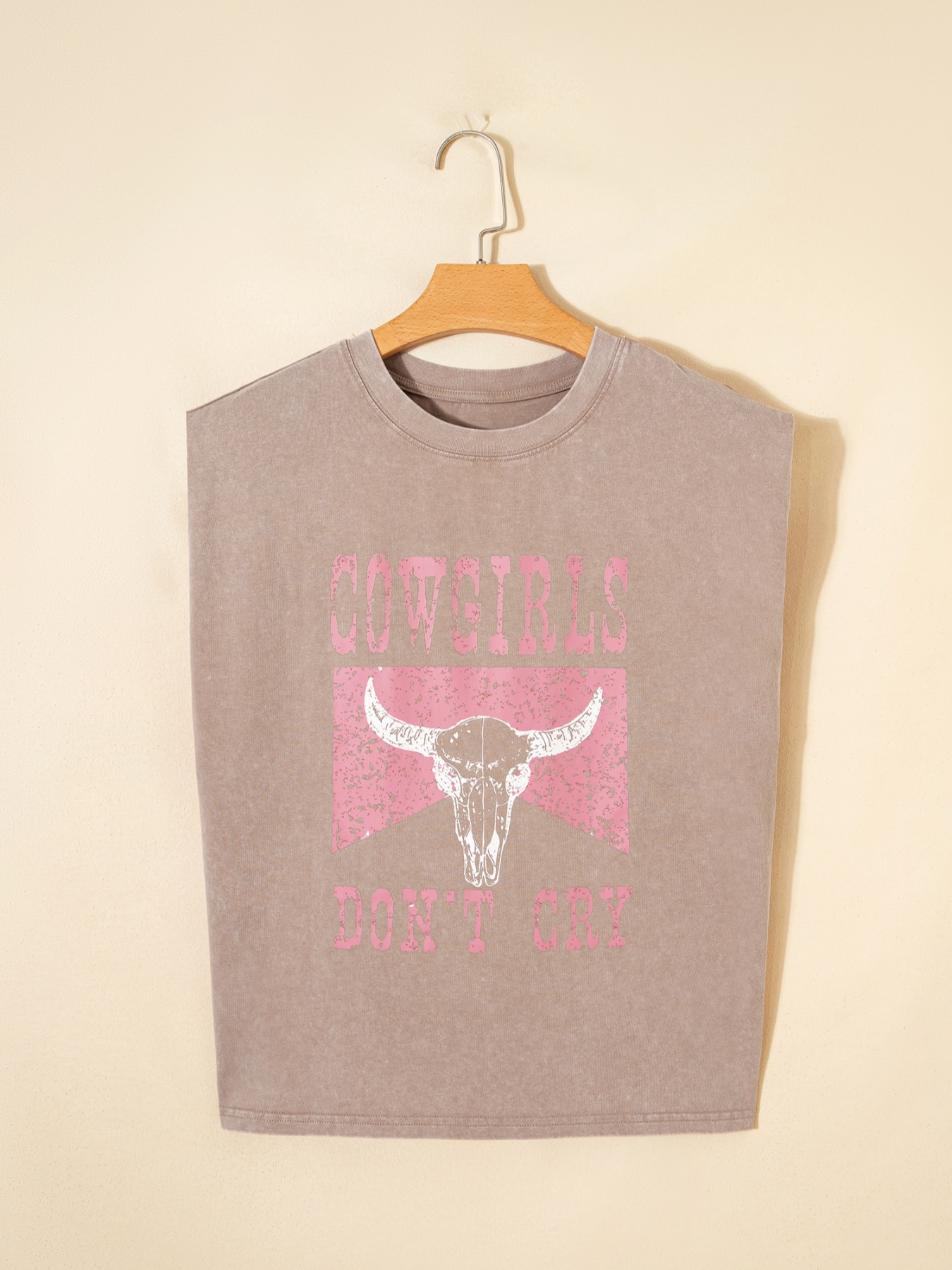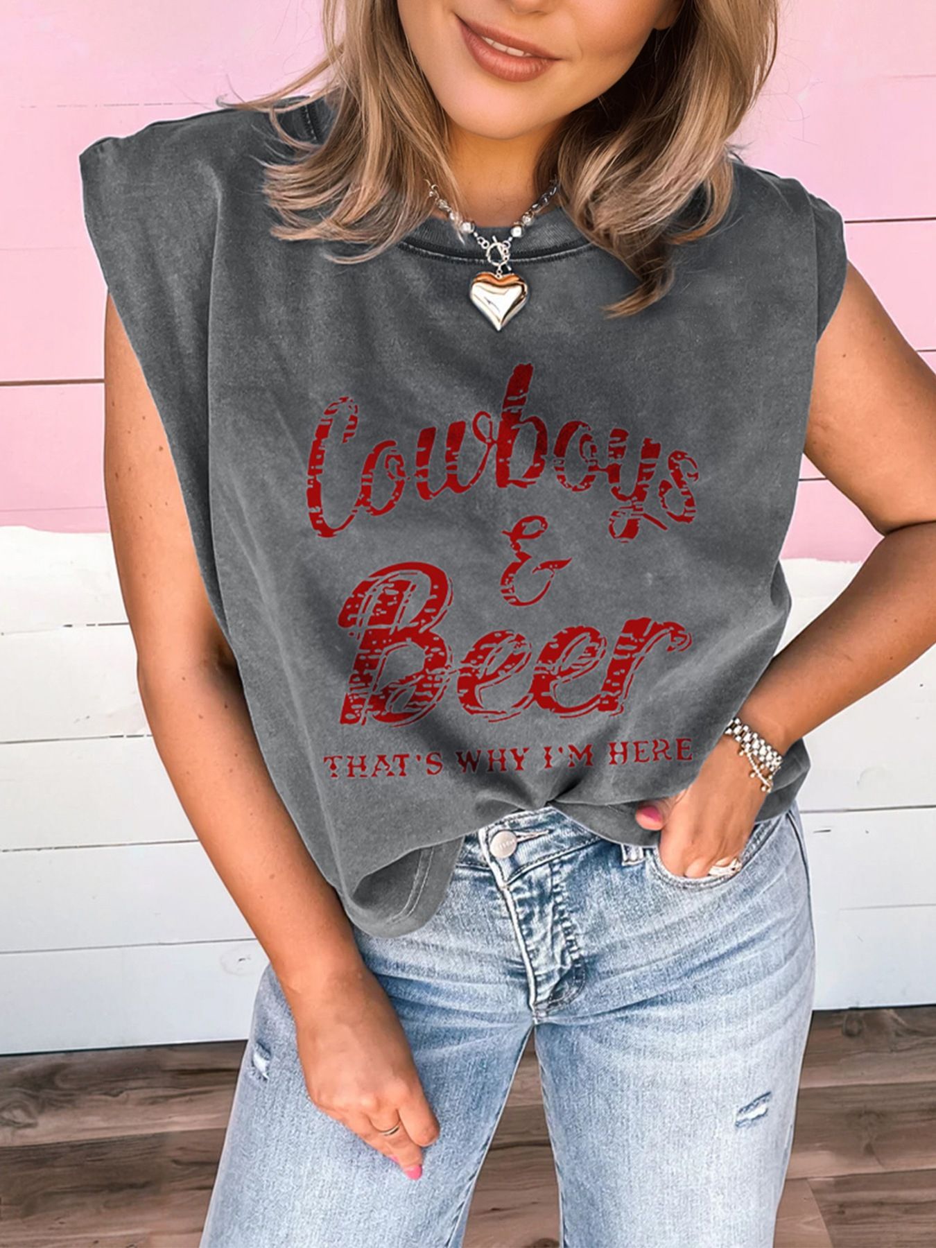 Cowboy & Beer Western Graphic Mineral Wash Tank Top