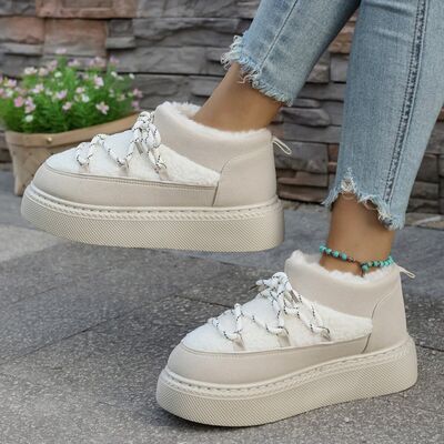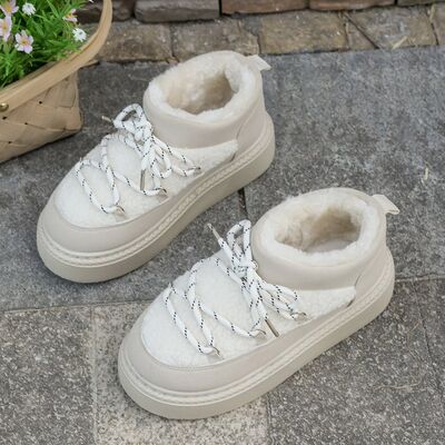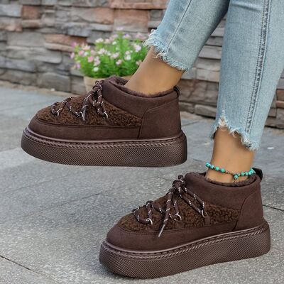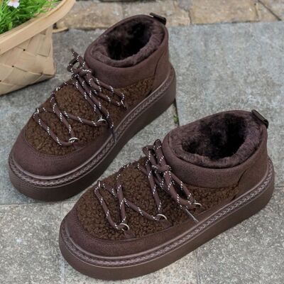 Cozy Plush Lined Lace-Up Platform Winter Boots
