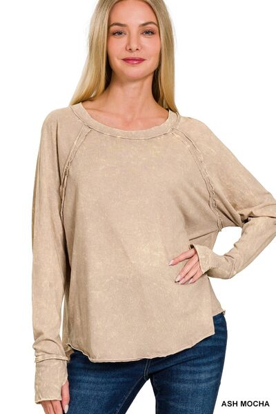 Crinkle Washed Thumb Hole Cuffs Long Sleeve Top