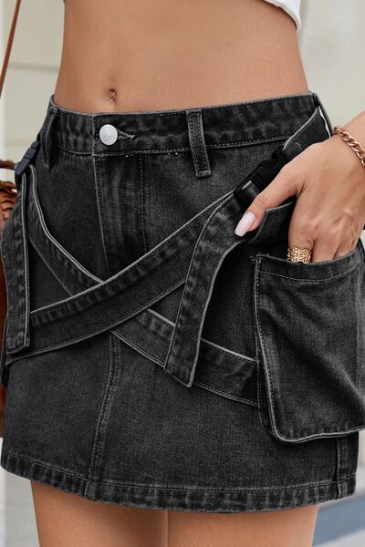 Criss-Cross Waist Detail Denim Mini Skirt