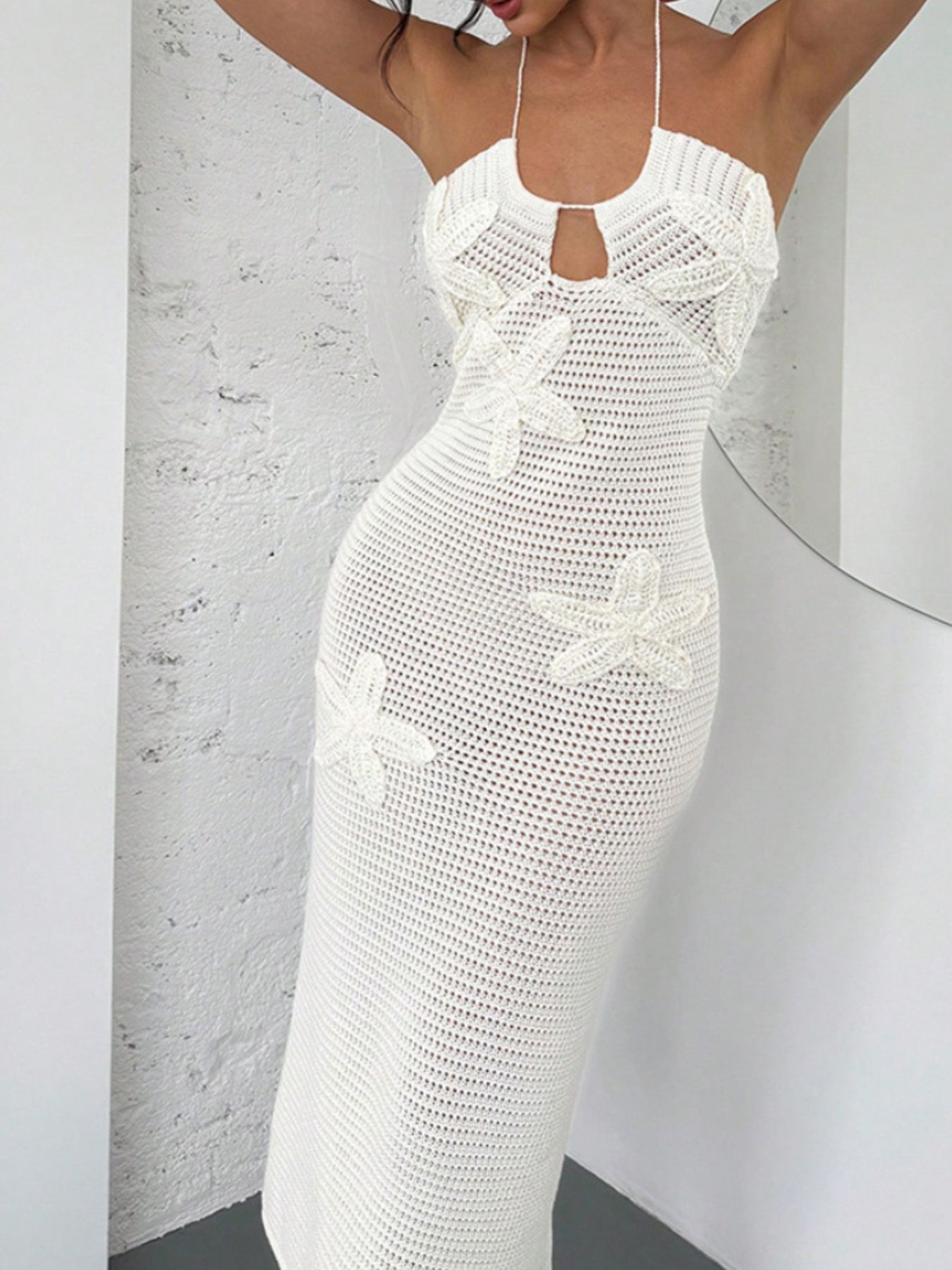 Crochet Backless Midi Knit Dress
