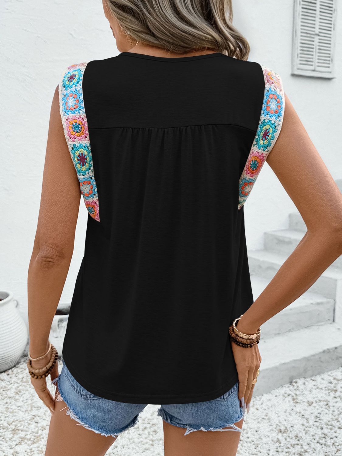 Crochet Hem Round Neck Top