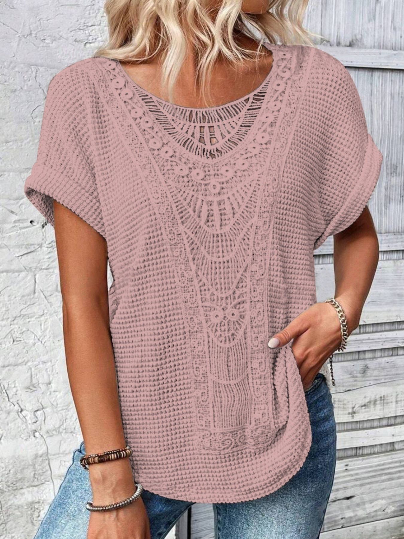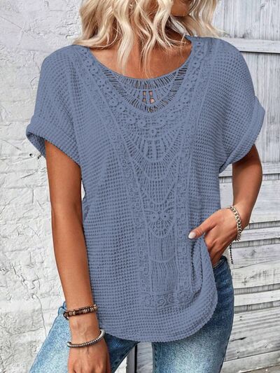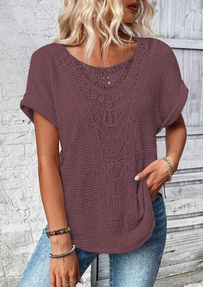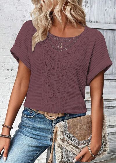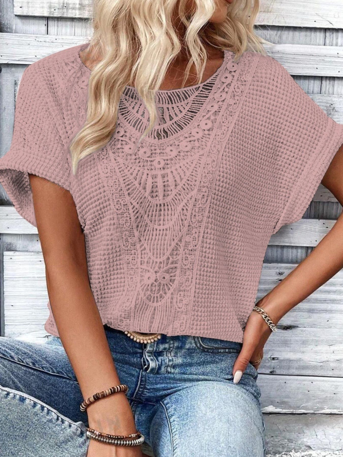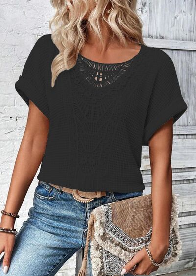 Crochet Lace Short Sleeve Casual T-Shirt