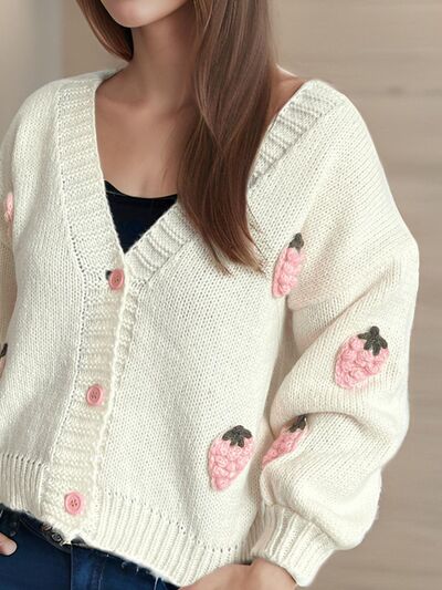 Crochet Strawberry V-Neck Long Sleeve Cardigan