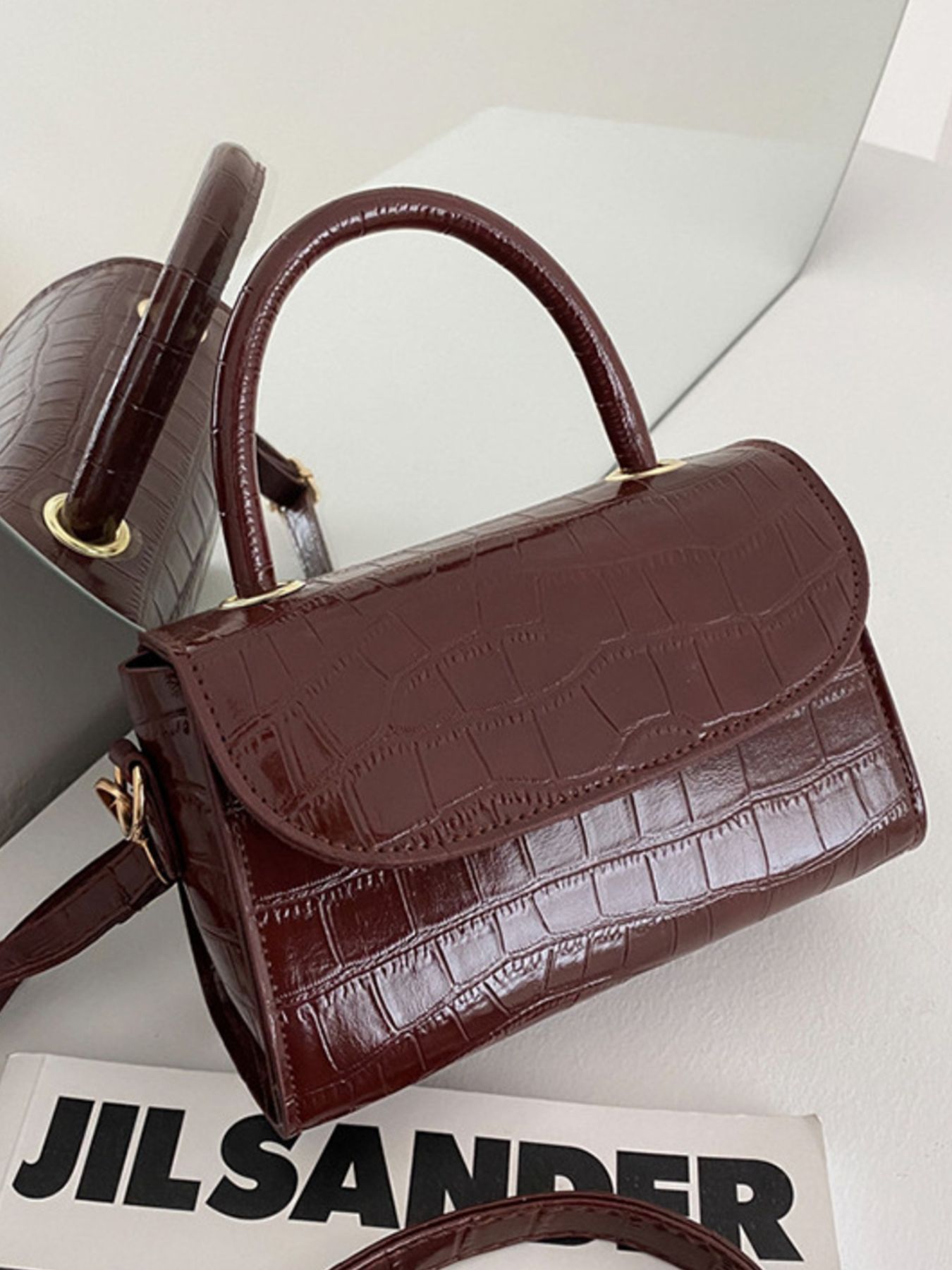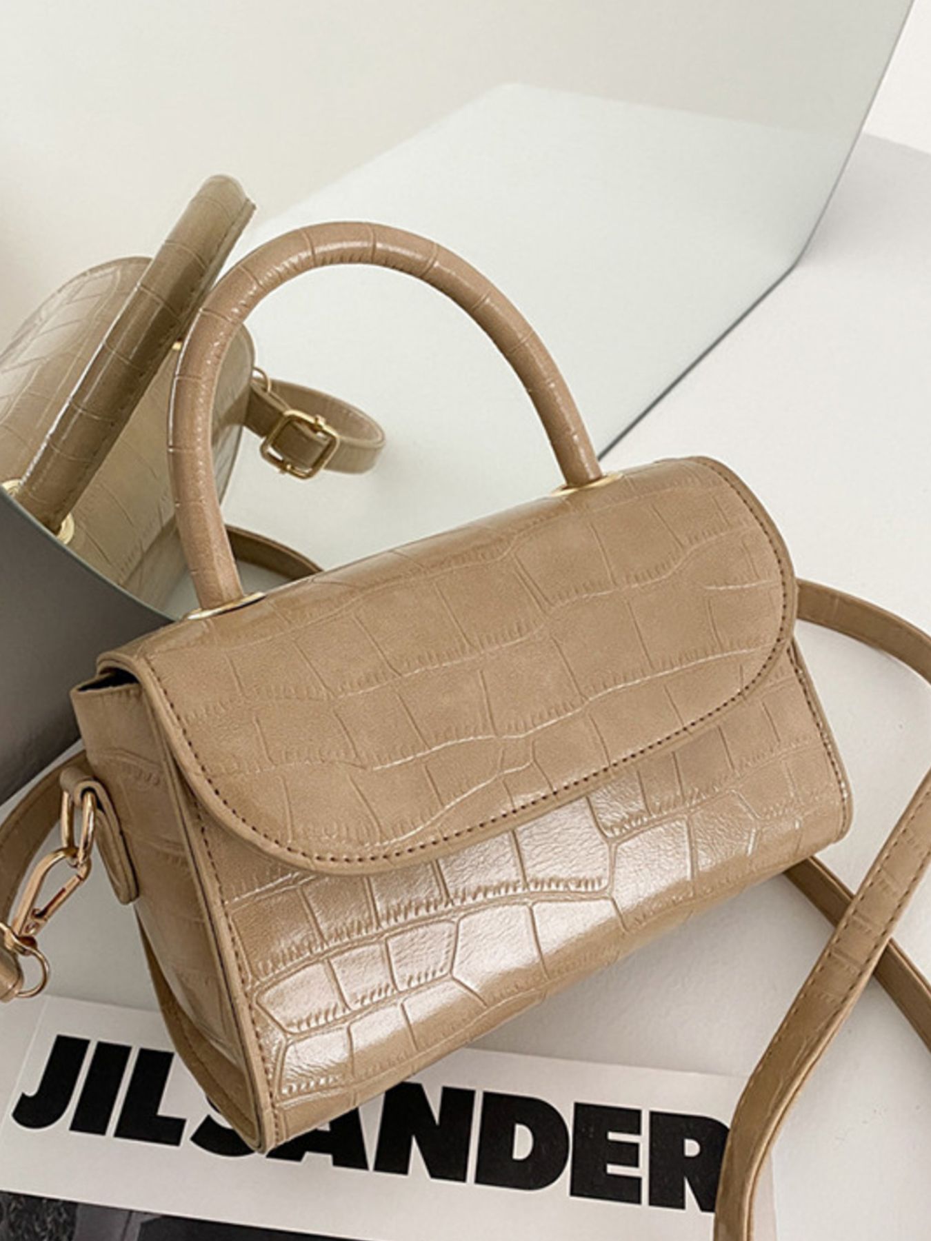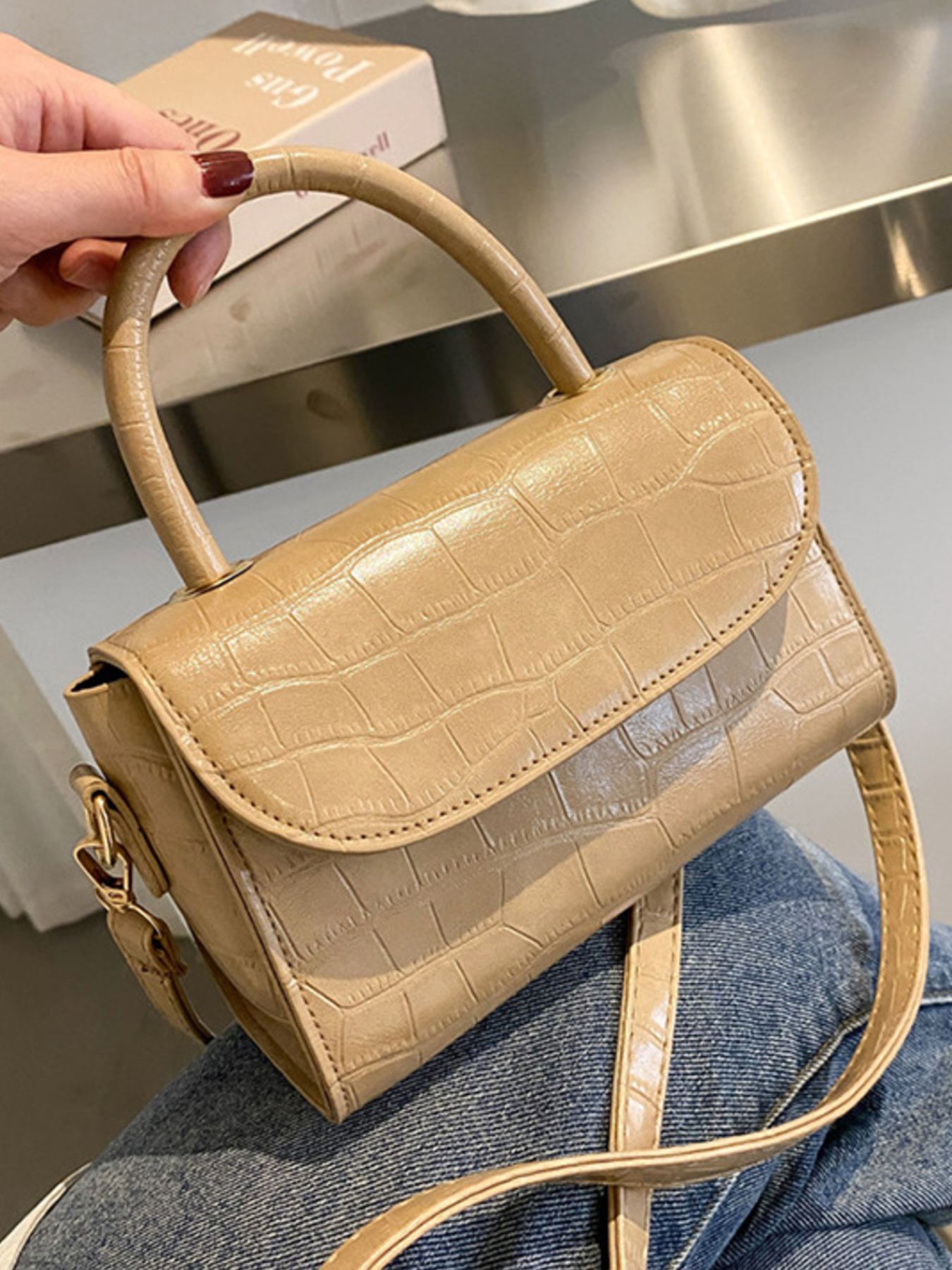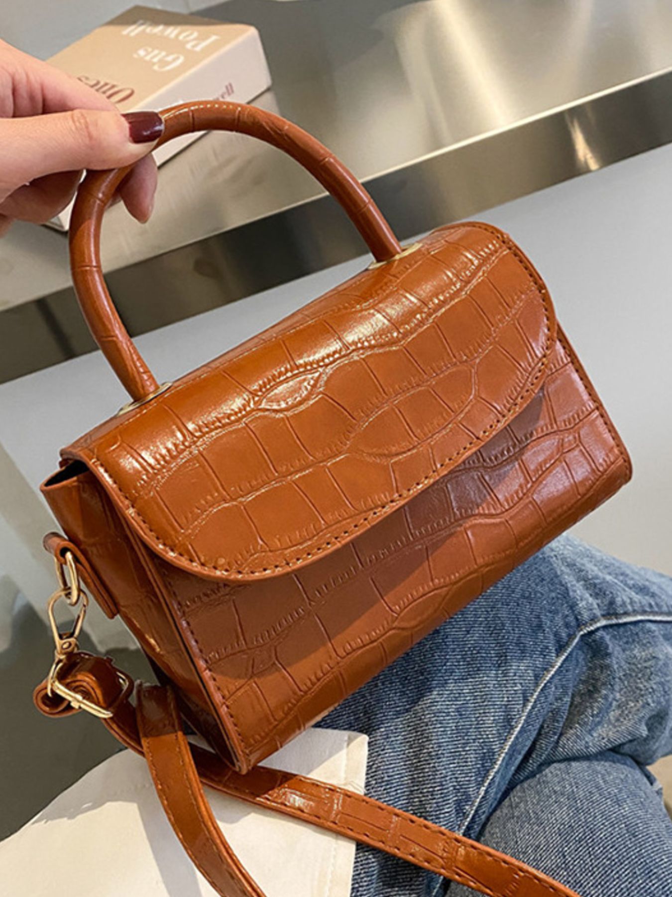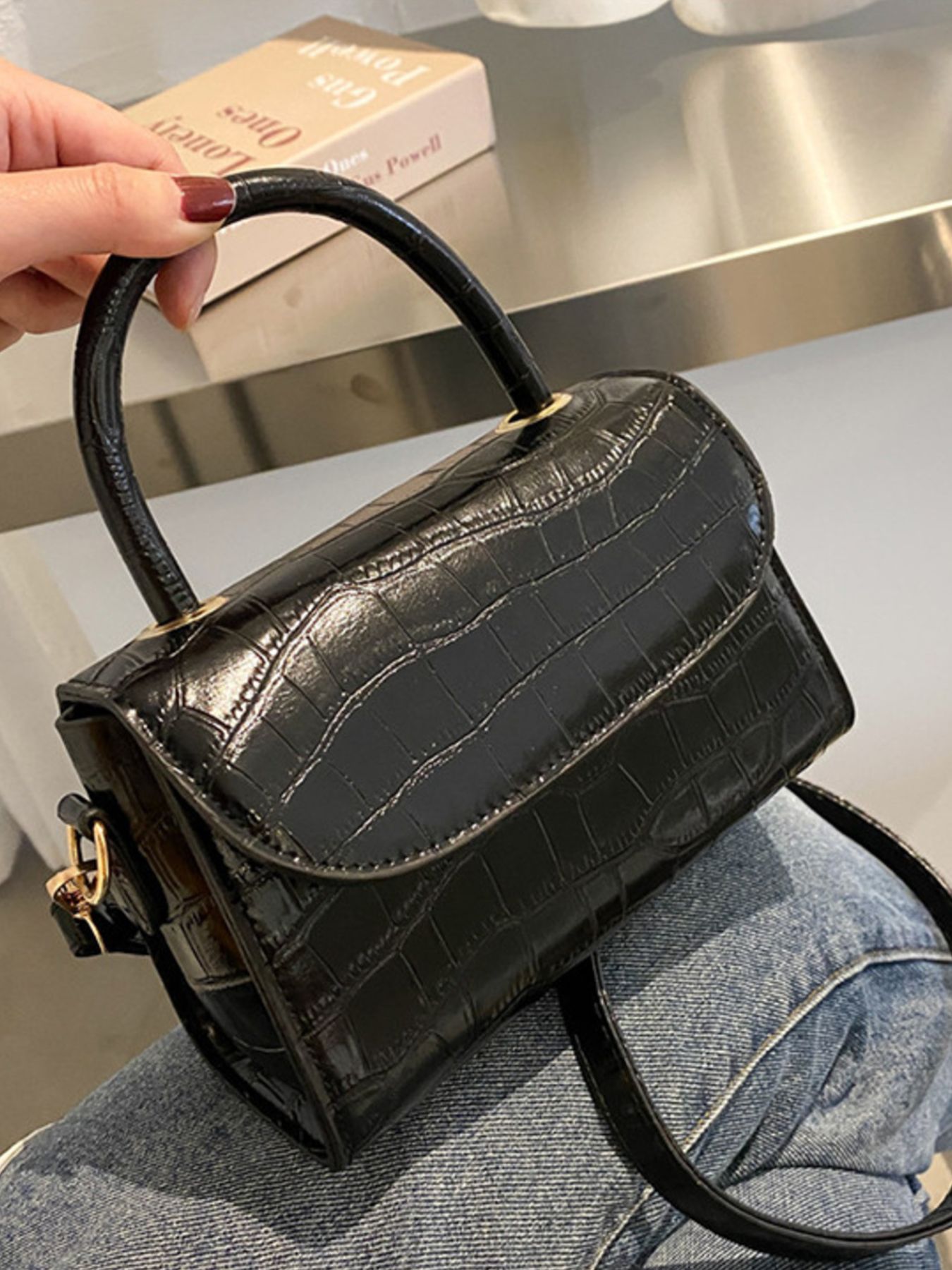Crocodile Pattern Top Handle Crossbody Bag
