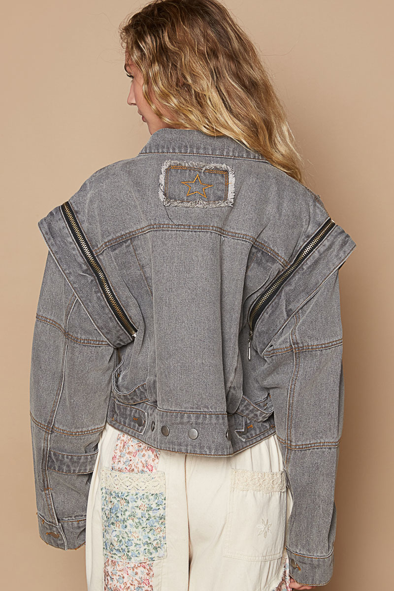 Cropped Denim Jacket with Functional Zipper Detail