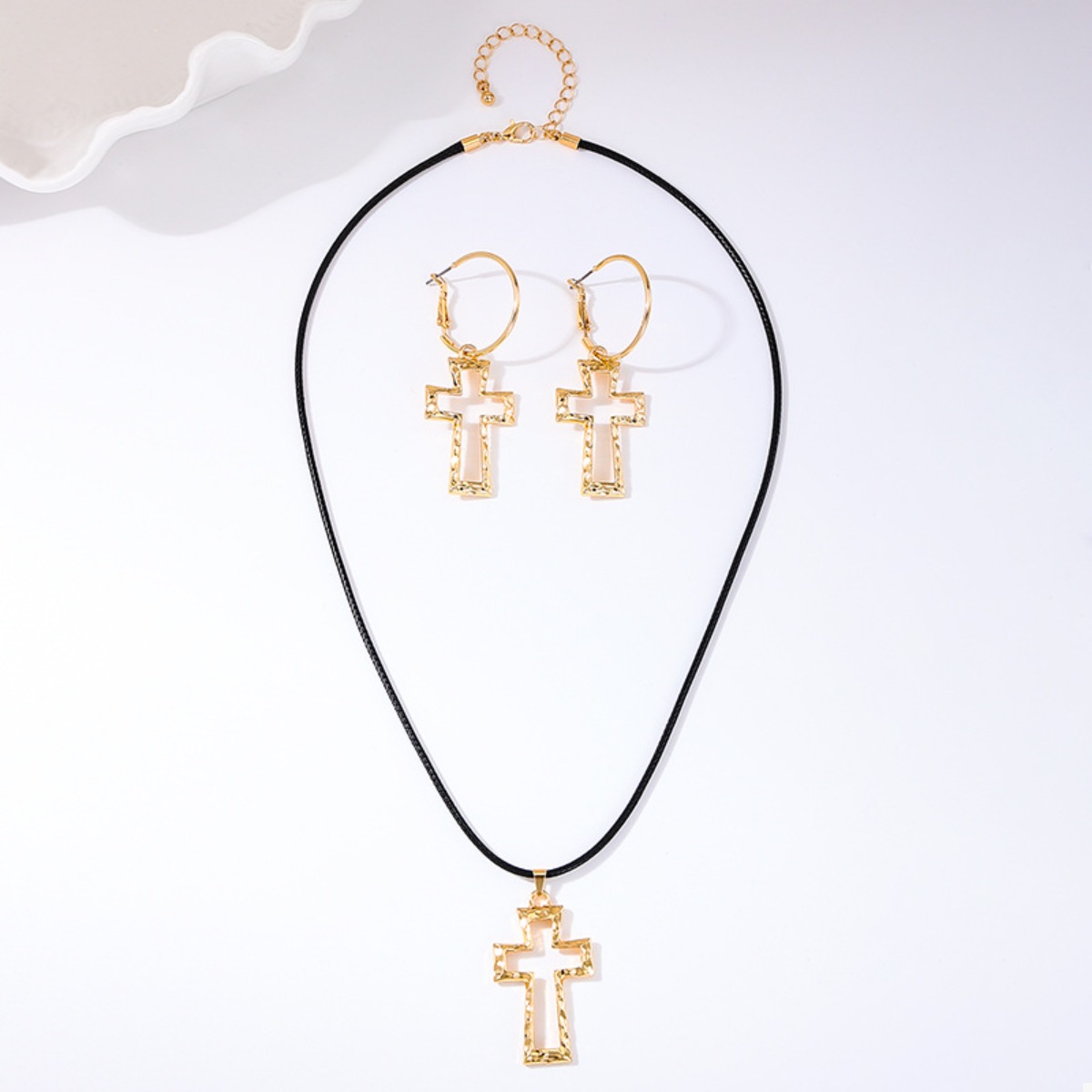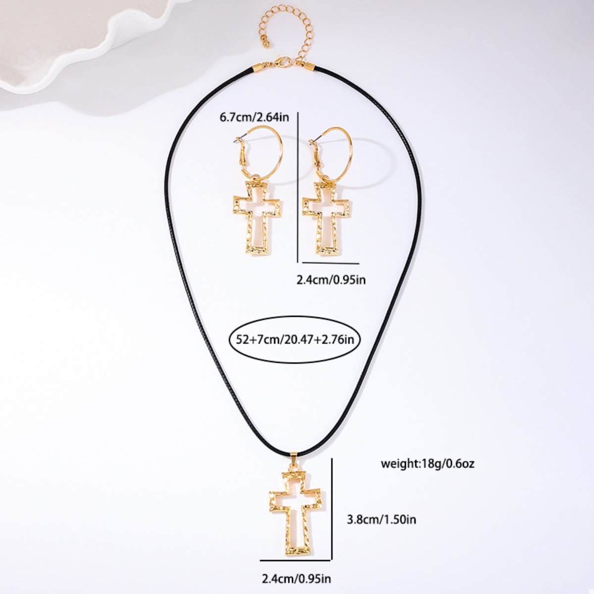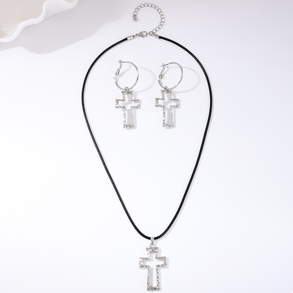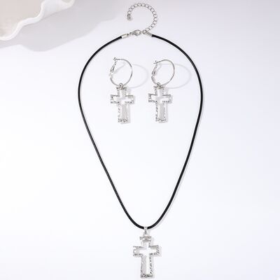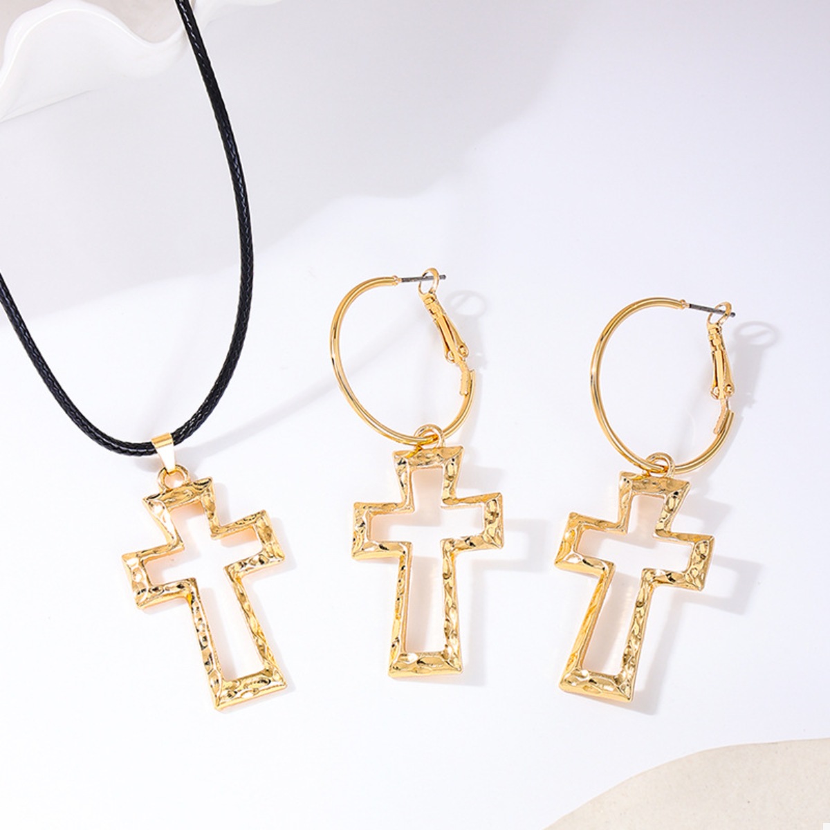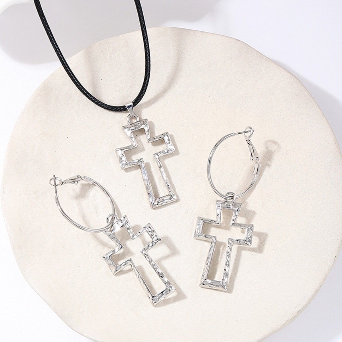 Cross Pendant Necklace & Hoop Earrings Jewelry Set