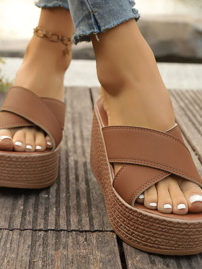 Cross Strap Platform Wedge Sandals