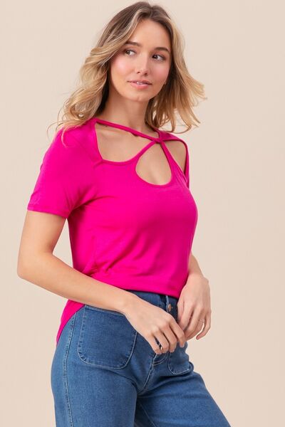 Cutout Asymmetrical Neck Short Sleeve T-Shirt
