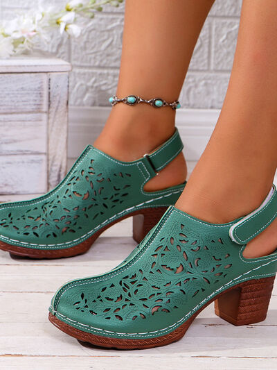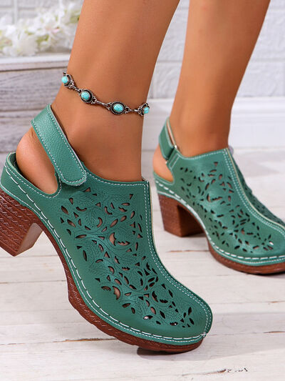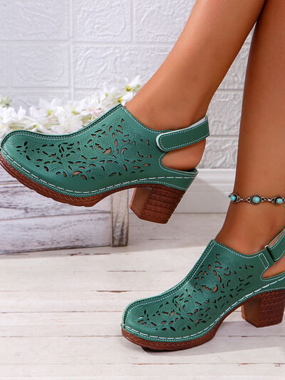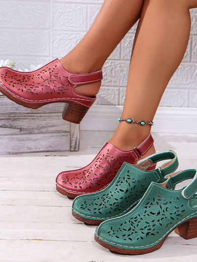 Cutout Block Heel Slingback Sandals