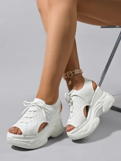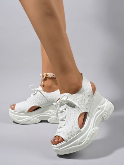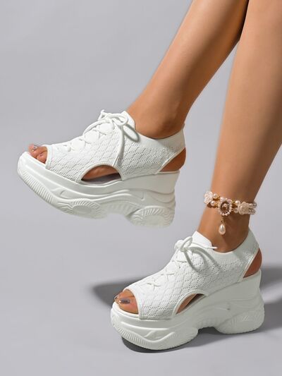Cutout Lace Up Platform Wedge Sandals