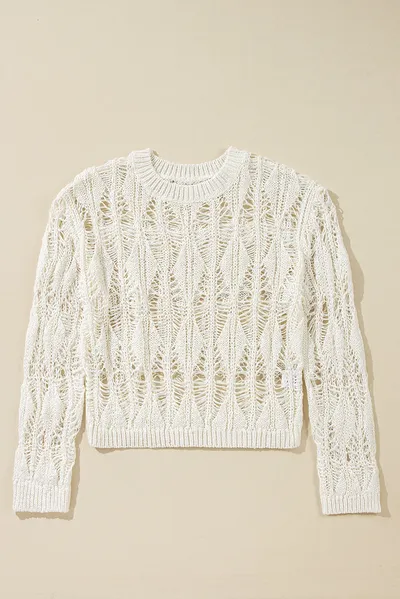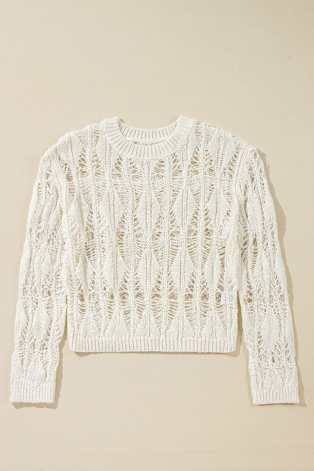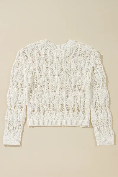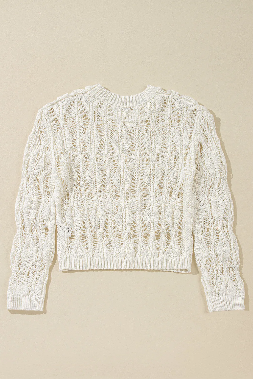 Cutout Round Neck Long Sleeve Knit Cover Up