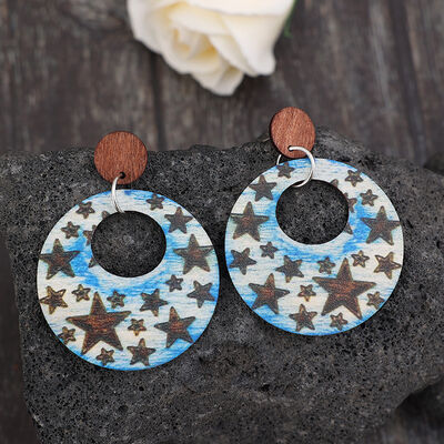 Cutout Star Print Wooden Dangle Earrings