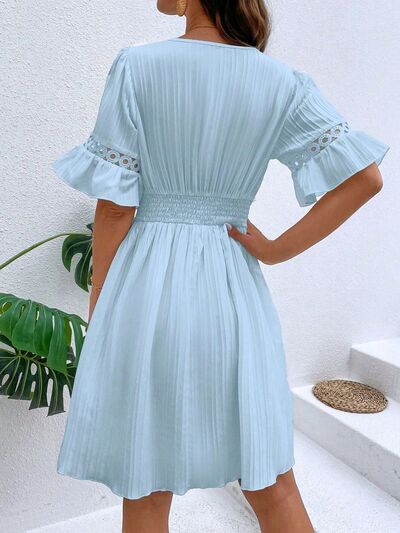 Cutout V-Neck Flounce Sleeve Mini Dress