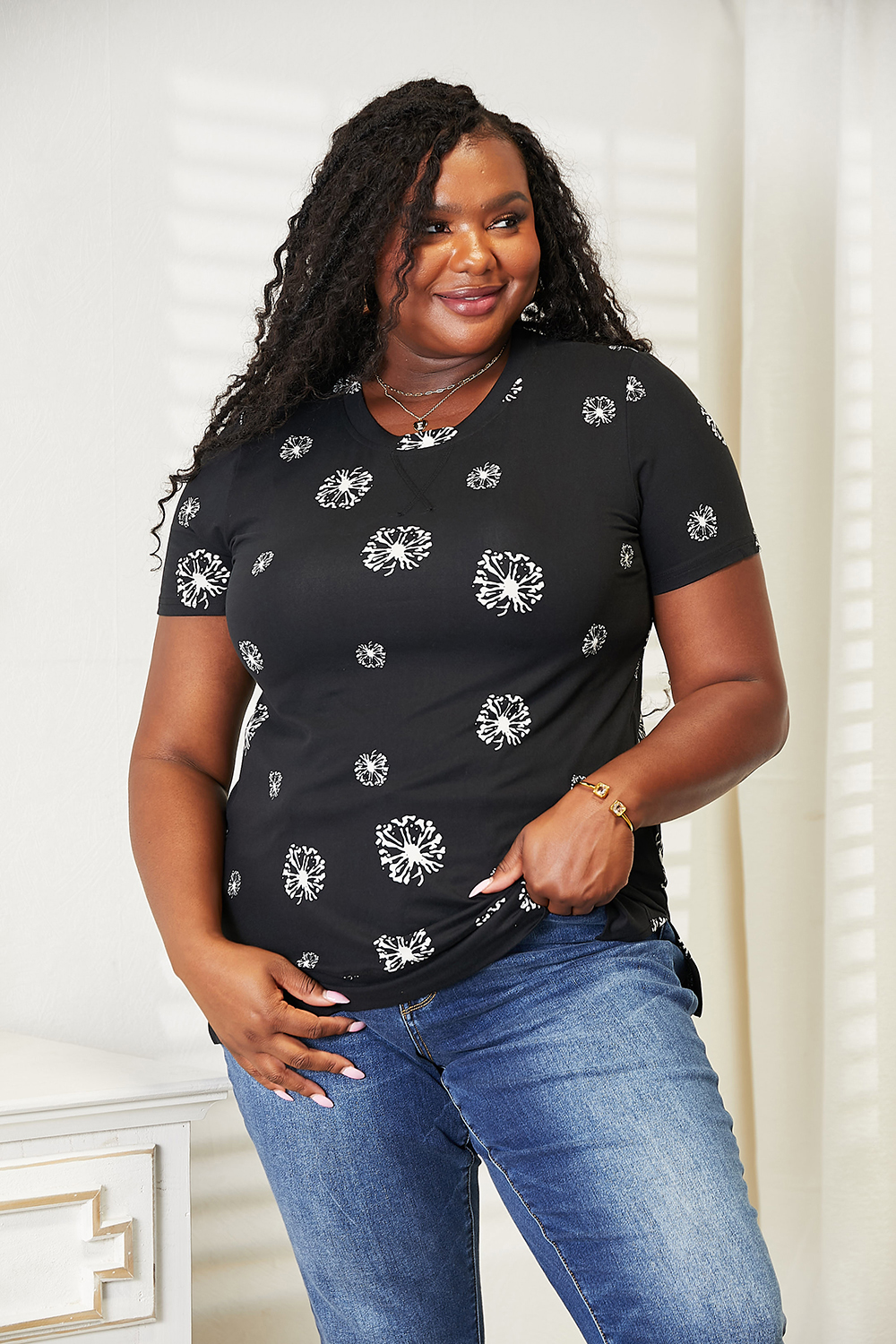 Dandelion Print Round Neck T-Shirt