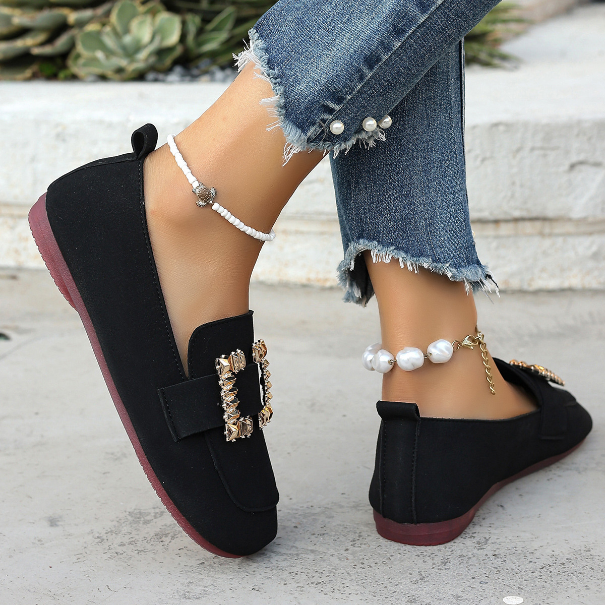 Decor Buckle Round Toe Slip-On