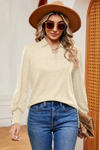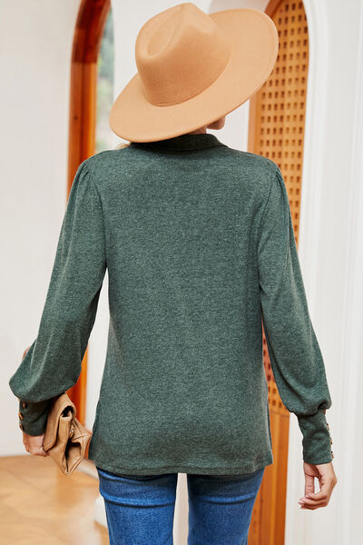 Decorative Button Johnny Collar Lantern Sleeve Blouse