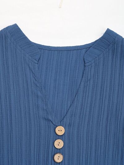 Decorative Button Notched Sleeveless Tiered Dress