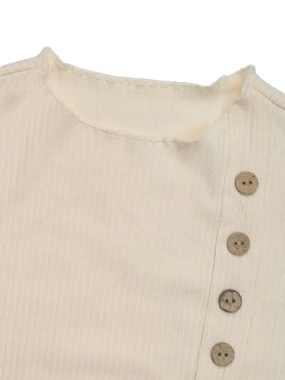 Decorative Button Round Neck Long Sleeve Bodysuit