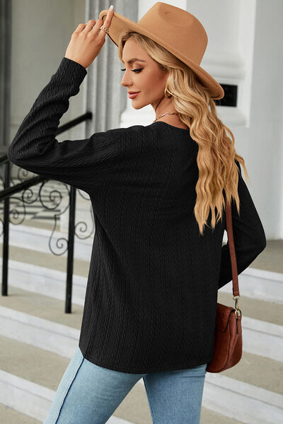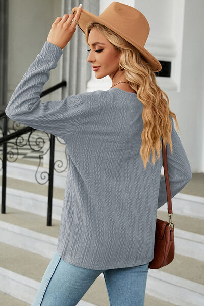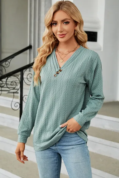 Decorative Button V-Neck Long Sleeve T-Shirt
